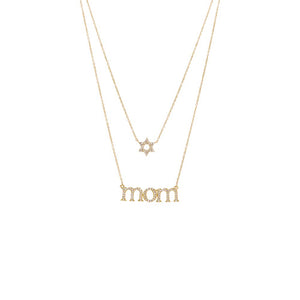 Diamond Pave Star Of David X Mom Two In One Necklace 14K