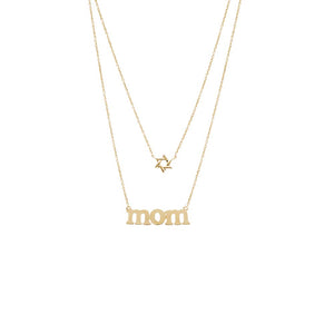 Solid Star Of David X Mom Two In One Necklace 14K