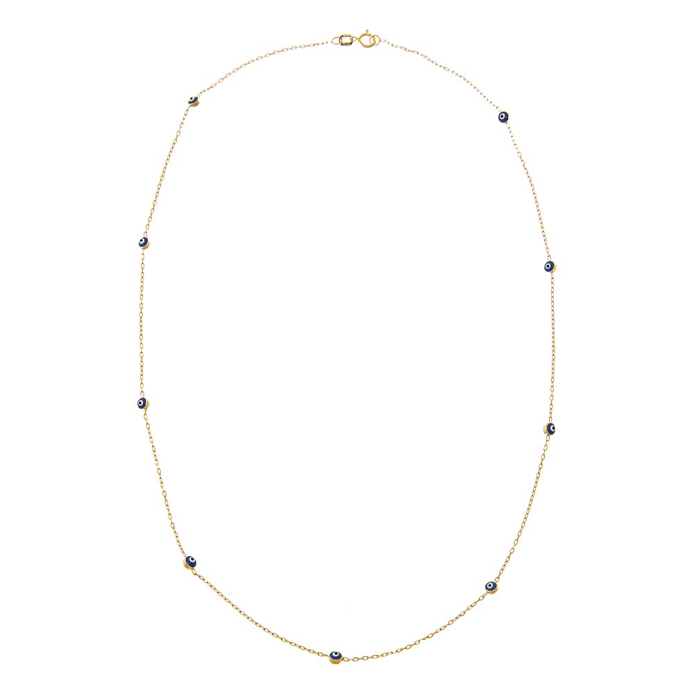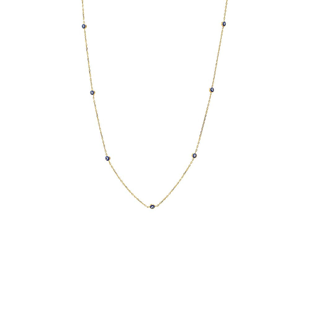 14K Sapphire Blue Evil Eye Station Necklace 14K