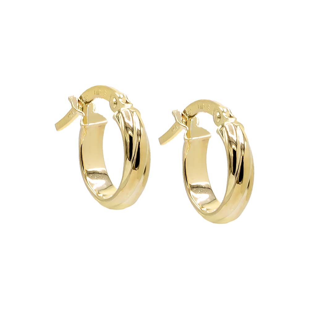 Evoke a sophisticated style choice in Adina Eden's Baby Fluted Twisted Hoop Earring, featuring a petite hoop accented with a flute-ridged design. Expertly crafted in glowing 14K gold, this gem has a way of elevating any routine look into a vision of elegance. Pair it with another set of huggies and a few studs for an exquisite, anytime stack.