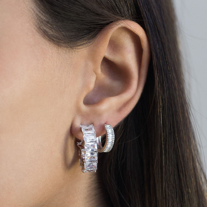 Dazzle in Adina Eden's 'Jocelyn' huggie earrings, crafted with sparkling baguette stones set in sterling silver. Rock them with your favorite dress. These glam earrings will get you noticed at your next fancy party.
