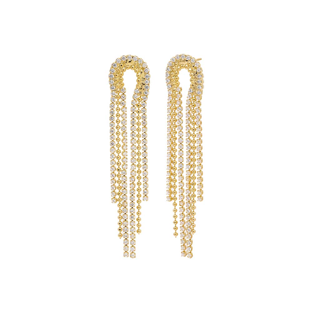 Dazzle with the Adina Eden Ball Chain X Tennis Looped Drop Stud Earring. A unique fusion of elegance and edge, these earrings feature a stylish combination of ball chain and tennis looped drops. Elevate your style with this captivating accessory, adding a modern and glamorous touch to your everyday or evening looks.