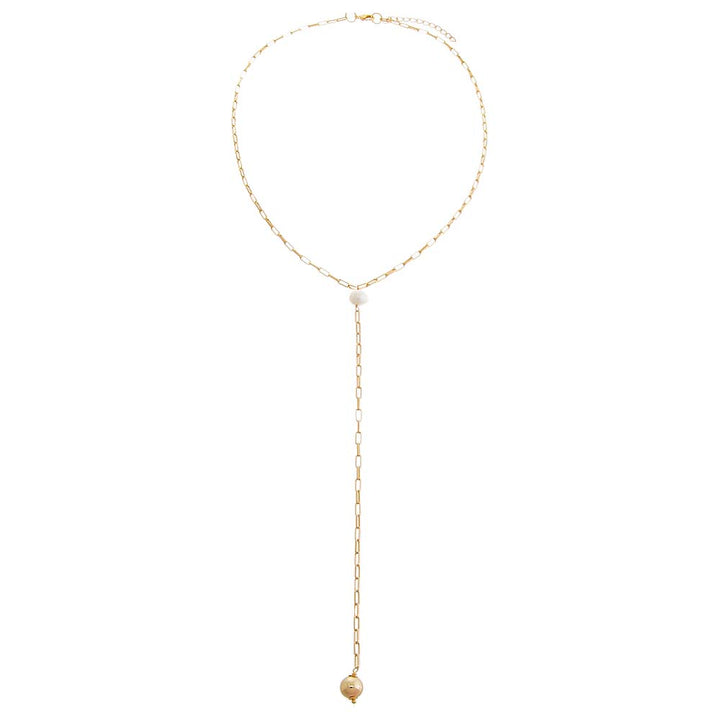 Ball X Pearl Link Lariat Necklace
