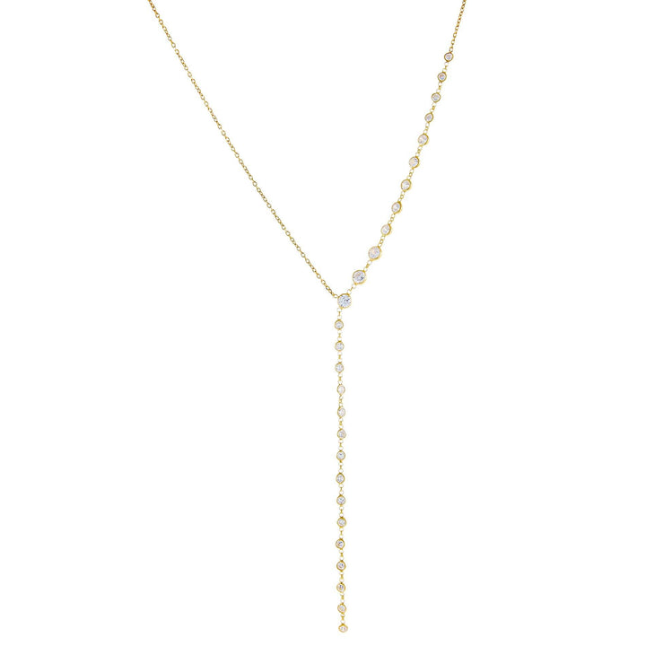 Dazzle wherever you go in Adina Eden's Bezel One Sided Lariat, featuring a stunning design that shows off sparkling clear CZ bezel stones on one side of a chic chain lariat and a solid gold vermeil finish on the other. This beauty makes the perfect centerpiece when paired with a few pendant necklaces and a V-Neck cocktail dress for an alluring look.