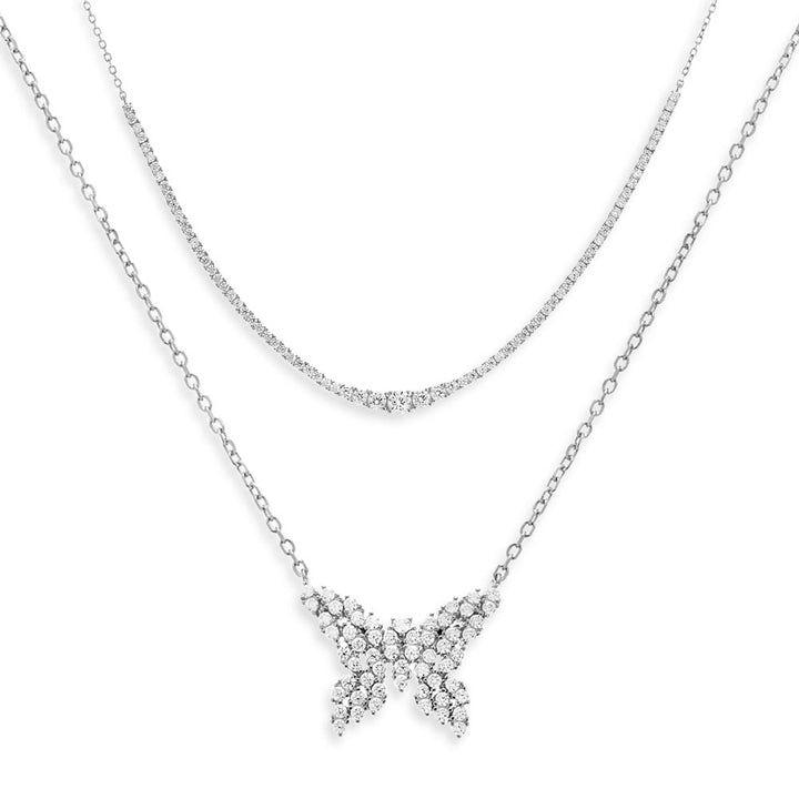Transform any outfit into an exquisite statement of style with Adina Eden's Butterfly Bling Necklace Combo Set, featuring a stunning scattered marquise CZ butterfly pendant necklace and a half CZ graduated tennis chain. It's equal parts sparkle and sophistication. Pair it with a couple of essential chains for a magnificent layered look.