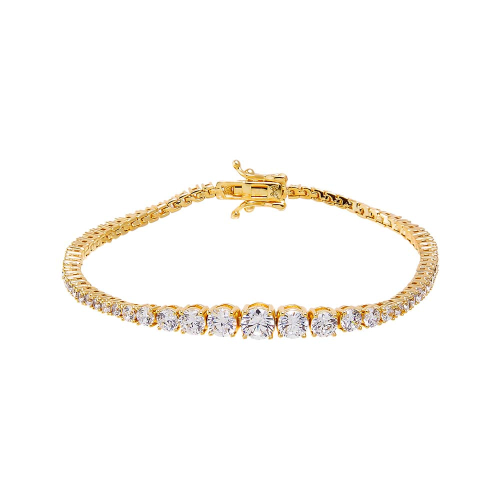 Fresh, refined, and endlessly wearable—the Center Graduated CZ Tennis Bracelet by Adina Eden is your new favorite Bracelet. With thoughtful shape and vibrant hues, this gold plated bracelet for women is styled in Gold and Silver. When your outfit needs polish without the pressure, it transitions with ease while keeping your look cohesive and fresh all day. Layer this gold plated bracelet with pieces from our Charm Bracelets collection to complete your look with ease and style. An instant staple you'll turn to again and again with confidence.