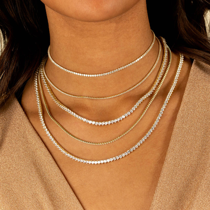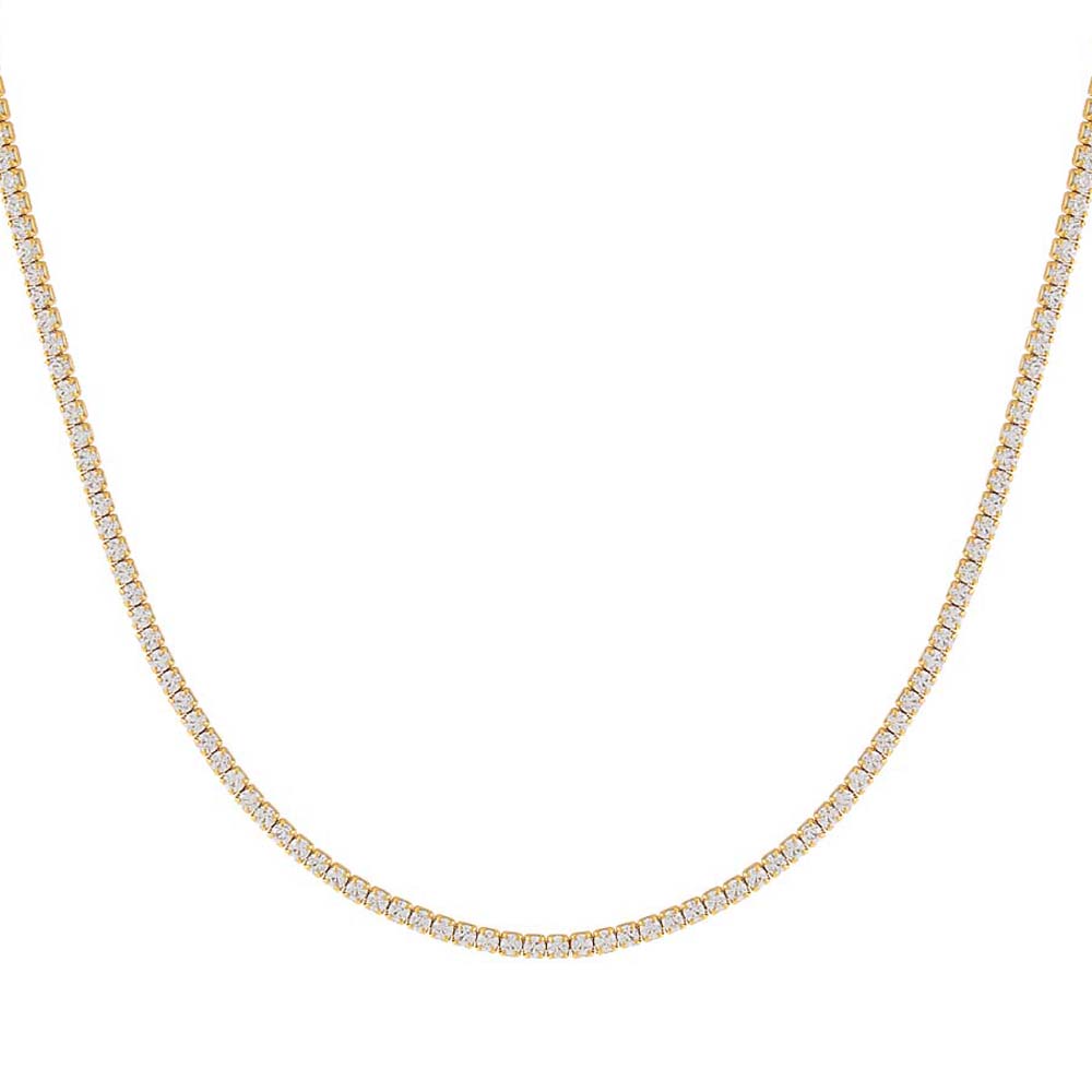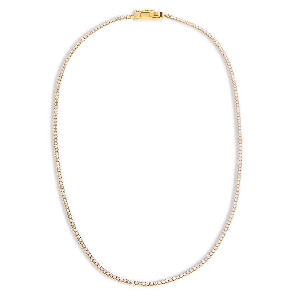 Go for a timeless sense of sparkle in Adina Eden's Classic Thin Tennis Necklace, featuring an array of dazzling CZs set into a slim tennis chain. Expertly crafted in gold-plating, this piece is a classic beauty that is a must-have in any fashionista's jewelry collection. Pair it with chains or charms alike for a vibrant view!