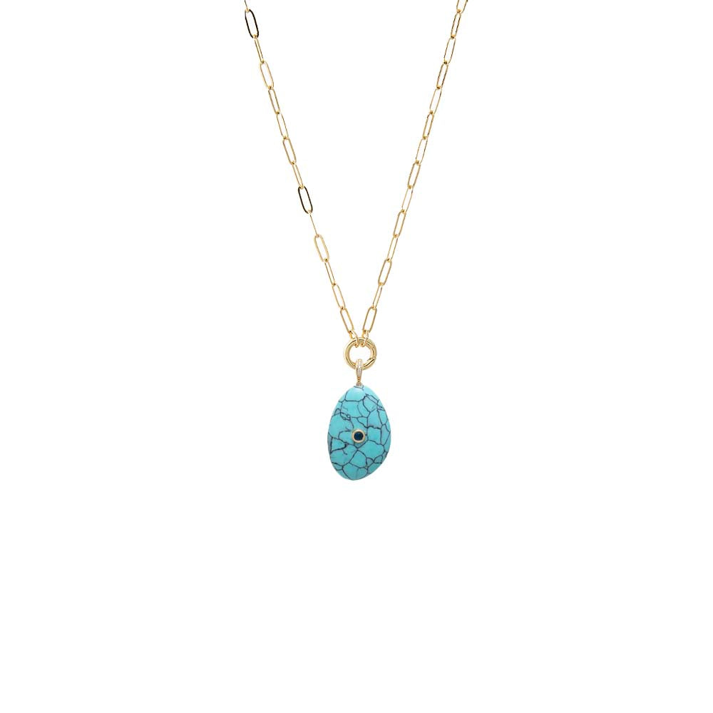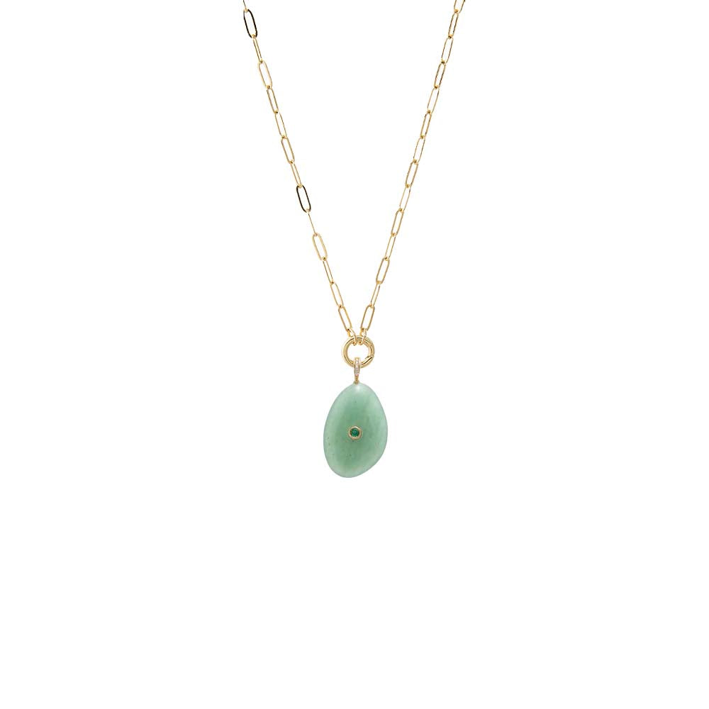 The Colored CZ Bezel Natural Stone & Clicker Toggle Necklace by Adina Eden delivers all-day shine in a sleek Necklace silhouette. Shine your way with this women's pendant necklace, crafted with love and available in Tiger Eye, Malachite, Turquoise, Onyx, Aqua, Jade Green, Rose Quartz and Lapis. Whether you're grabbing coffee or dressing up for dinner, this piece adapts to your mood, your outfit, and your pace—no questions asked. Complement this gold plated pendant necklace with selections from the Tennis Necklaces collection to make your everyday styling effortless. A quiet standout that never feels like it's trying too hard.