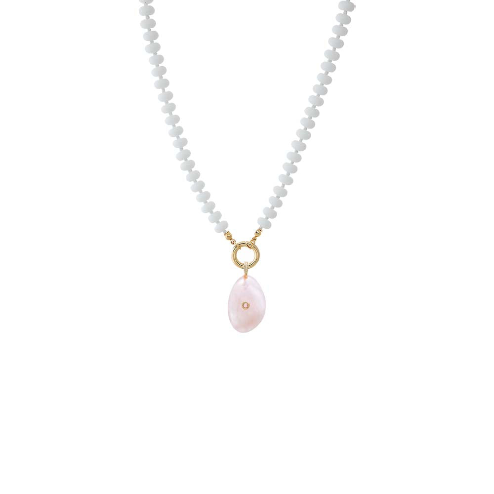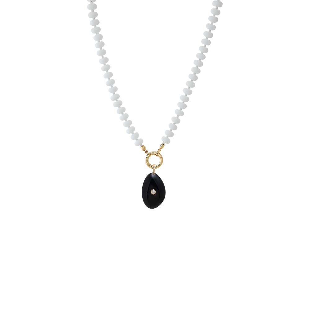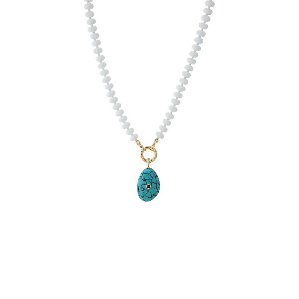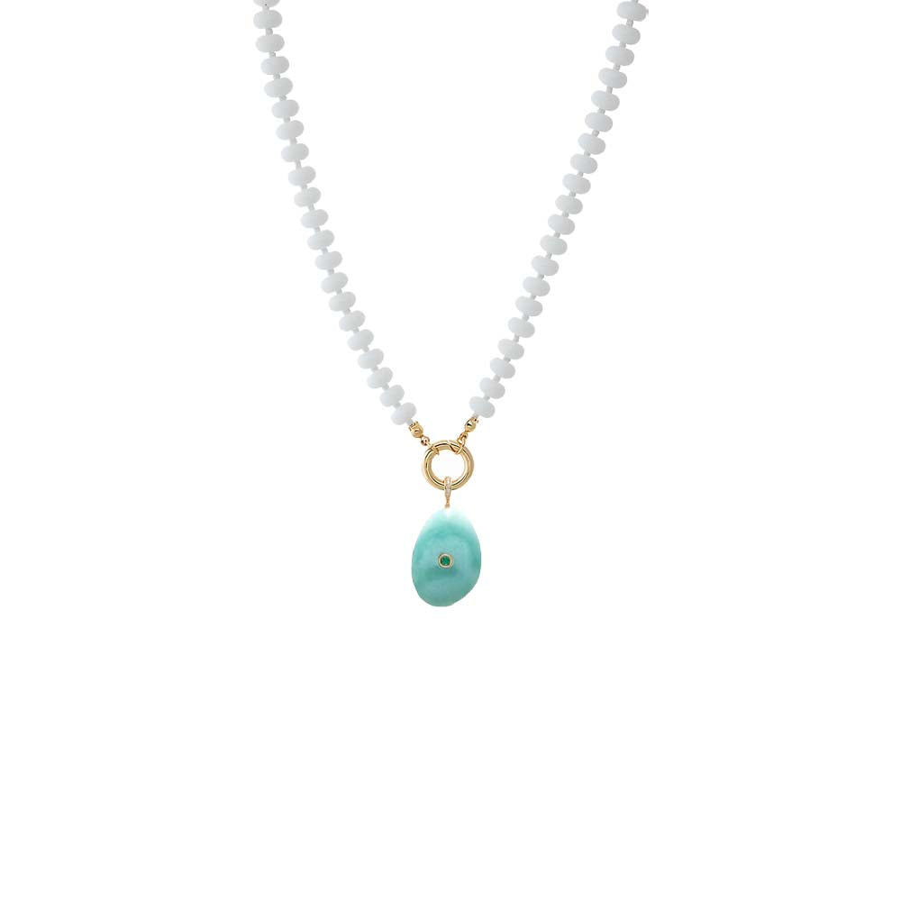 Colored CZ Bezel Natural Stone Pendant Beaded Clicker Necklace