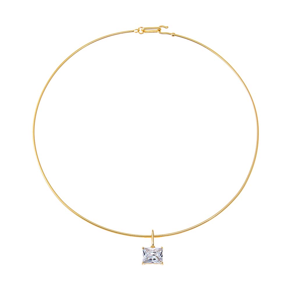 Colored CZ Emerald Charm Solid Thin Wire Choker Necklace