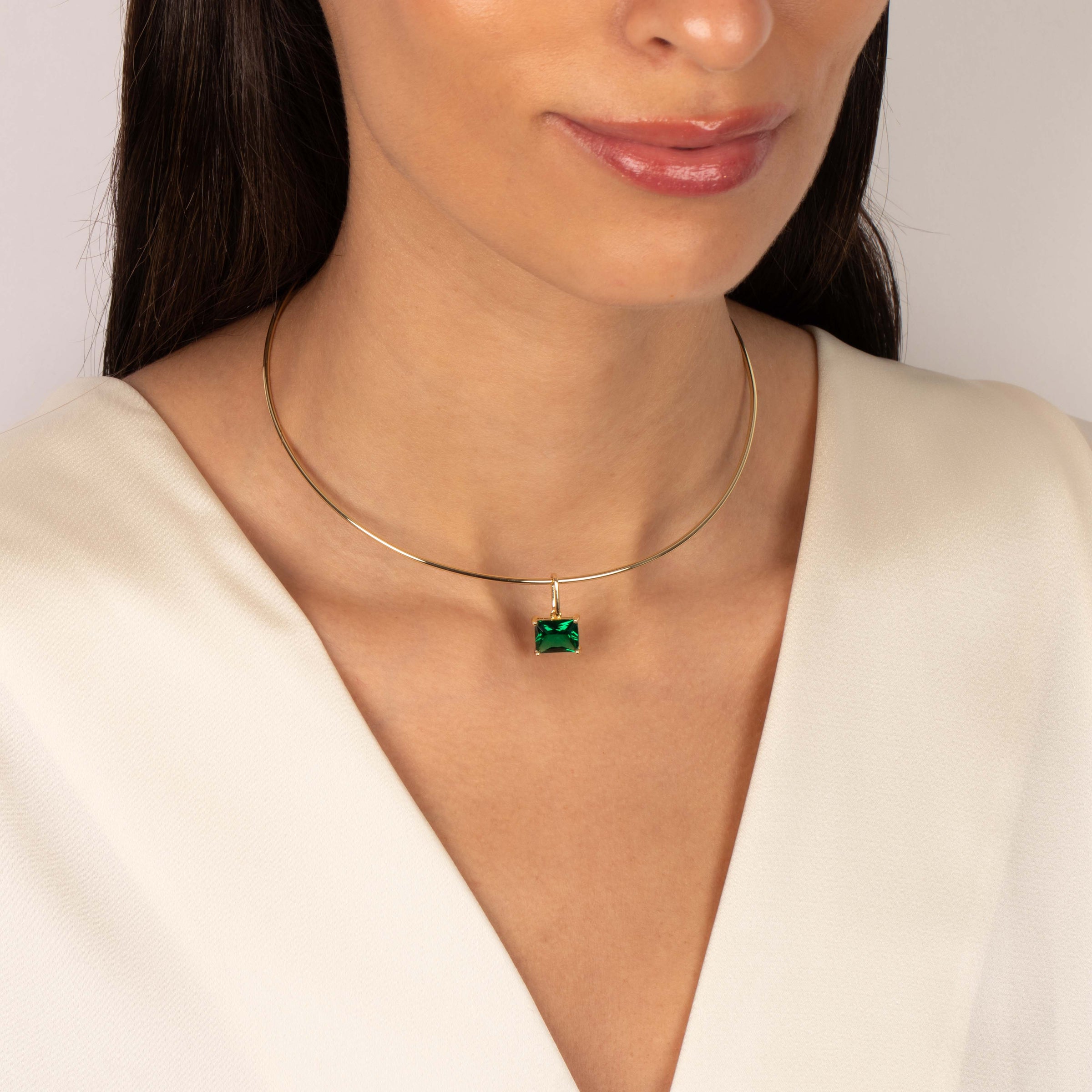 Add effortless charm to your accessories with the Colored CZ Emerald Charm Solid Thin Wire Choker Necklace by Adina Eden, a perfectly polished Necklace. Styled for shine and simplicity, this women's fashion necklace is offered in Gold, Emerald Green, Ruby Red and Sapphire Blue for daily wear. Designed for the real world, it turns even your simplest outfit into a styled ensemble. Blend this gold plated necklace with pieces from our Chain Necklaces collection to complete your look with ease and style. Made to match your pace, your plans, and your style.