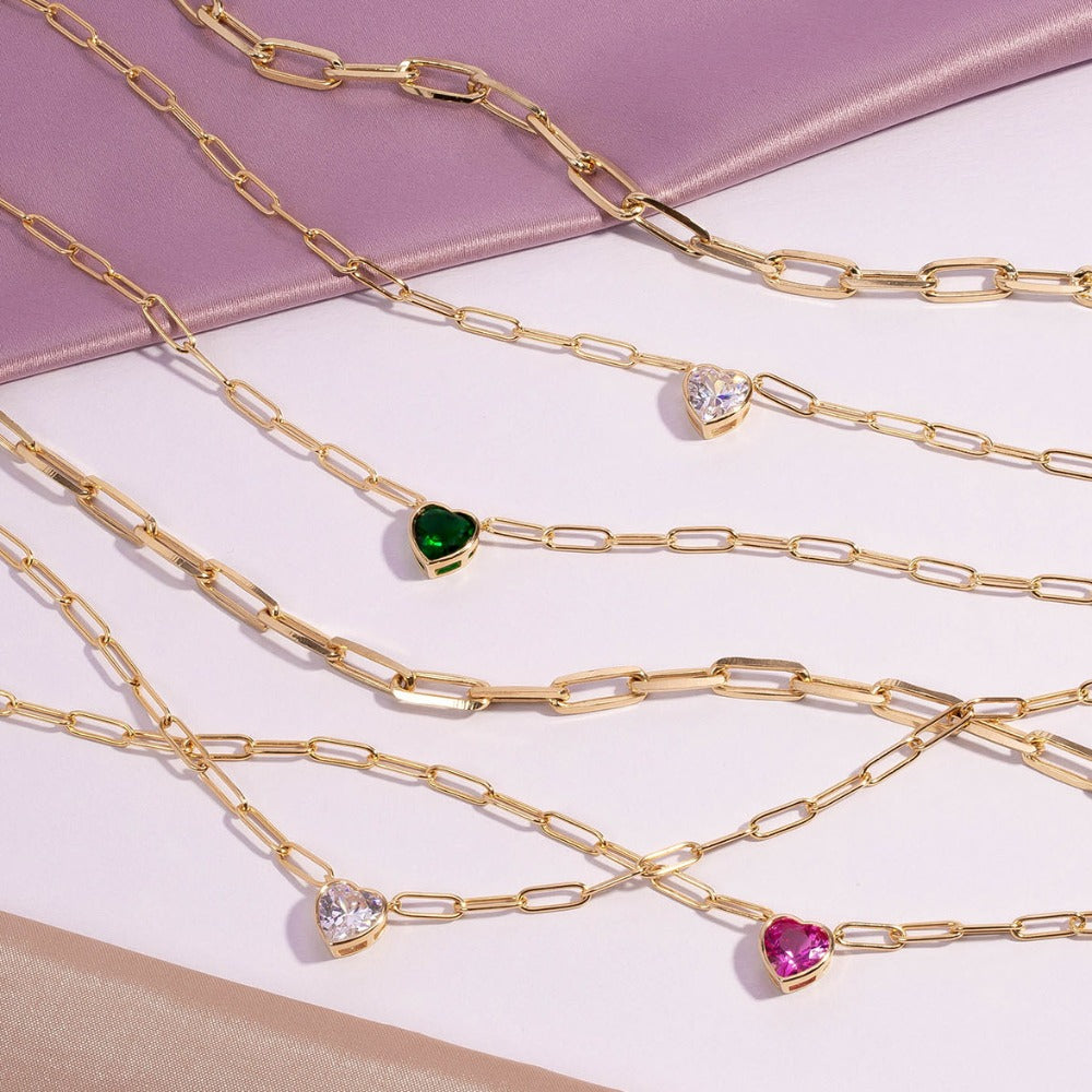 Colored Bezel Heart Link Necklace