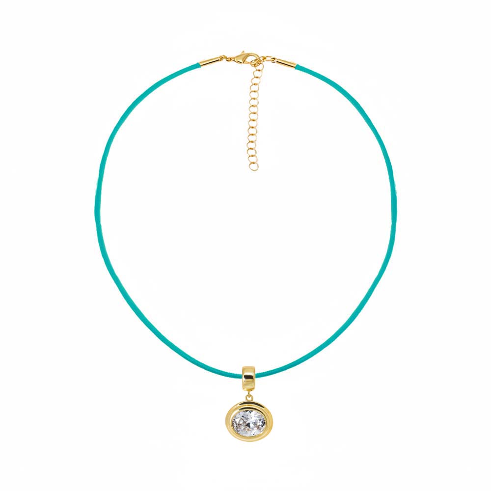 Colored CZ Oval Bezel Pendant & Rope Chain Choker Necklace