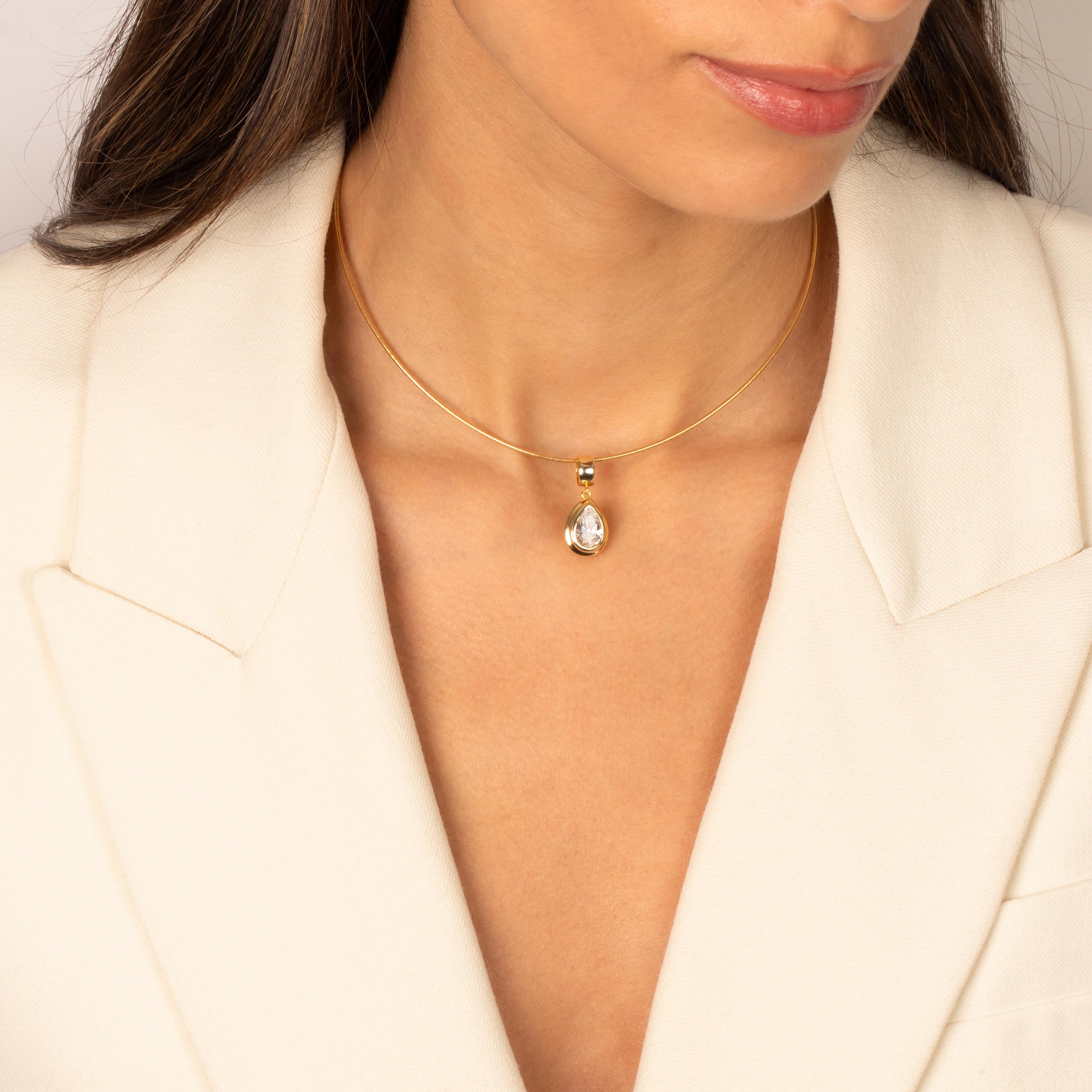 Colored CZ Pear Bezel Pendant Omega Chain Necklace
