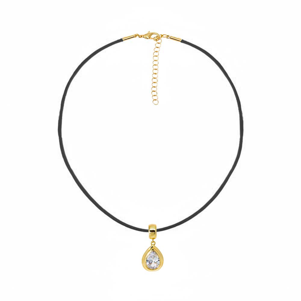 Colored CZ Pear Bezel Pendant & Rope Chain Choker Necklace