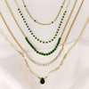 Rock a brilliant look in Adina Eden's Colored Multi Stone Necklace, featuring a series of glittery colored CZ pendants that dangle from a delicate chain. Wear this gem in a variety of colors ranging from sapphire pink to emerald green. The town will sparkle when you are out and about in this gem, a couple of chic chains, and a cute cocktail dress! Simply stunning.