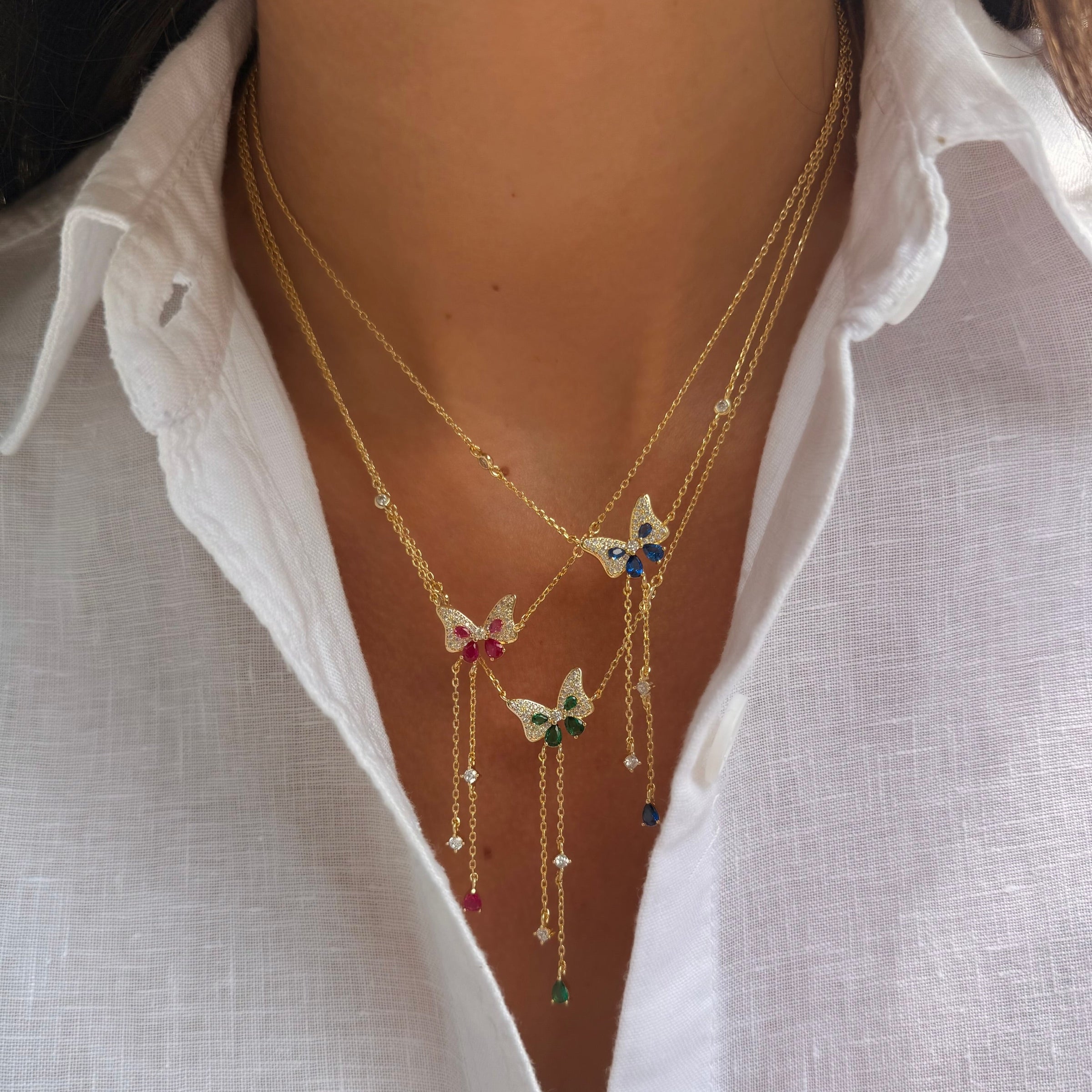 Make minimal feel major with the Colored Pave Butterfly CZ Station Lariat Necklace by Adina Eden, a polished Necklace to love. Chic and sophisticated, this comes in Gold, Sapphire Pink, Sapphire Blue and Emerald Green to keep your look fresh. For anything on your calendar, it transitions with ease while keeping your look smooth, cohesive, and fresh all day. Combine this with selections from the Tennis Necklaces collection to complete your look with ease and style. A piece that proves effortless can still feel unforgettable.
