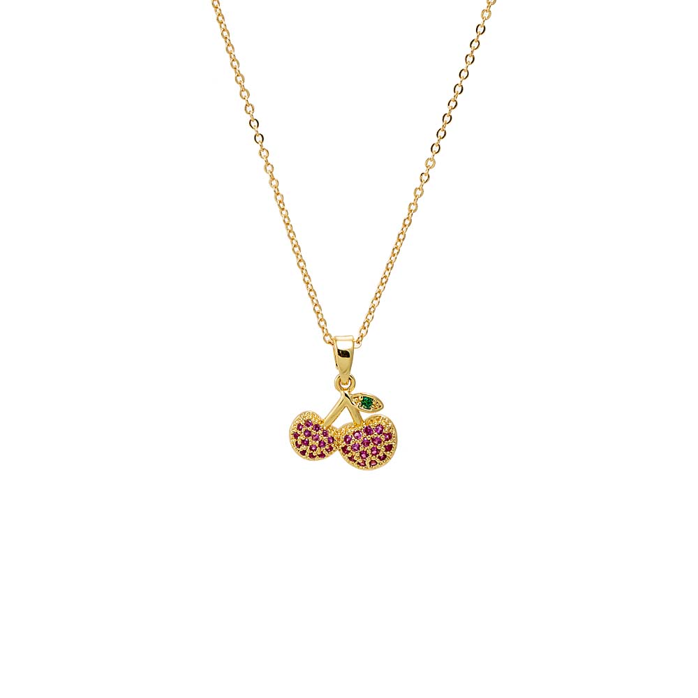 Colored Pave Cherry Pendant Necklace