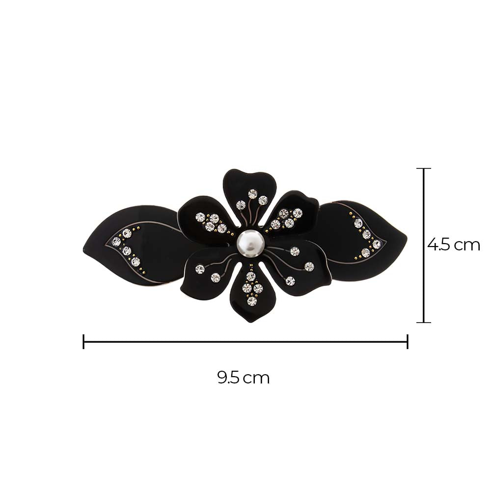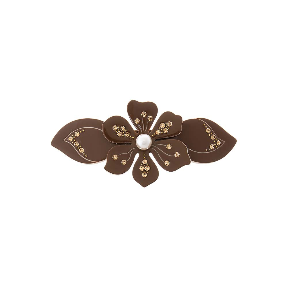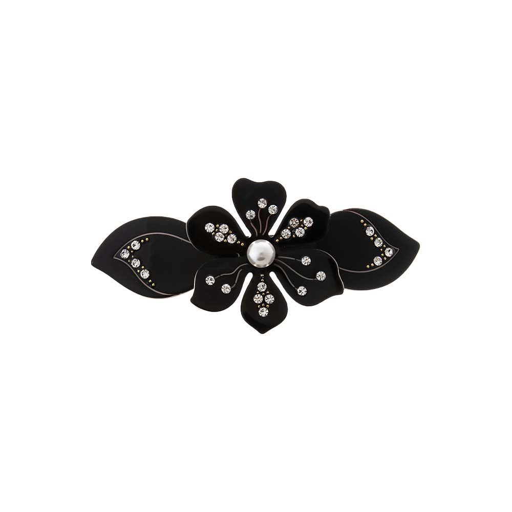 Colored Rhinestone & Pearl Center Flower Hair Barrette