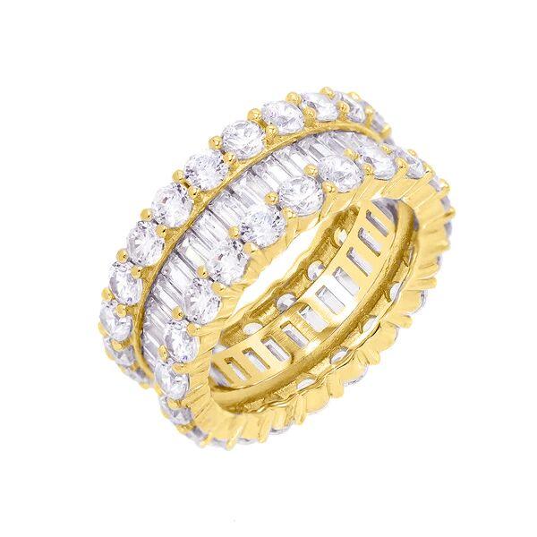 Our CZ bands are crafted with a row of rectangular baguettes surrounded by two rows of round CZ stones. Adina Eden's sterling silver ring will add dimension to any ring stack. This glitzy eternity band is also a great way to solidify your love - yet another reason to turn CZ bands into your new jewelry obsession.