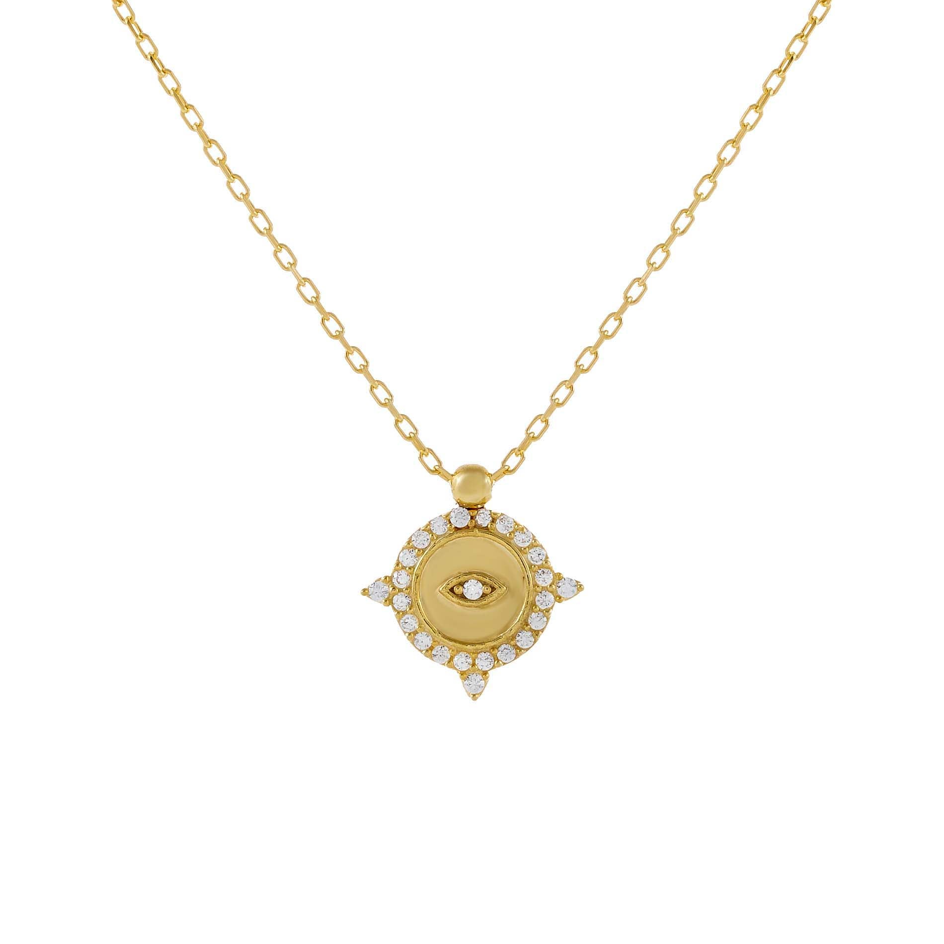 Chart out of course of style in Adina Eden's CZ Compass Necklace, featuring a stunning CZ-stone adorned compass pendant that dangles gracefully from a dainty gold vermeil chain. This is a perfect piece to wear in a pendant necklace stack so flaunt it with a V-Neck tee and a pair of dark denim jeans for a lively look at your next lunch with the girls.