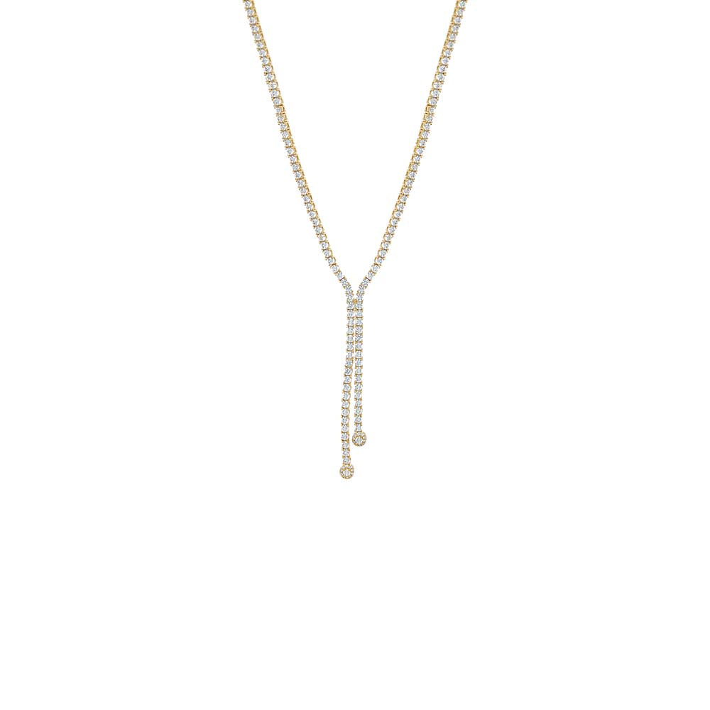 Meet your new go-to the CZ Double Overlay Drop Lariat Tennis Necklace by Adina Eden, a Necklace that adds just the right amount of shine. With an airy silhouette and striking colors, this lariat chain necklace shines in Gold and Silver. When you want your outfit to feel complete, it helps you feel confident and complete—like the final touch your look didn't know it needed. Layer this gold plated lariat necklace with pieces from our Tennis Necklaces collection to complete your look with ease and style. Once you try it, you'll keep styling it again without hesitation.