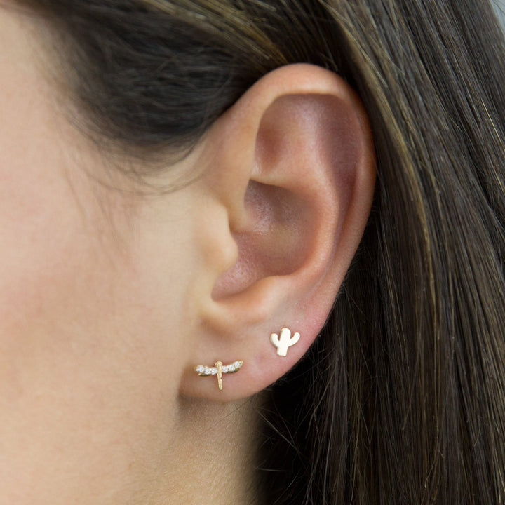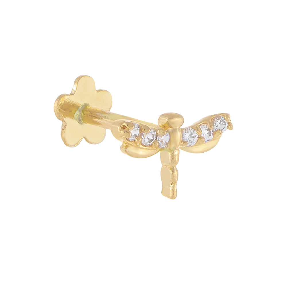 Fly high in style with Adina Eden's CZ Dragonfly Threaded Stud Earring, featuring an exquisite dragonfly pendant that is adorned in sparkling CZ stones, all set on a chic threader earring of 14K gold. This piece works marvels when paired with a series of alluring studs and an elegant blazer for an eye-catching look at your next cocktail hour.