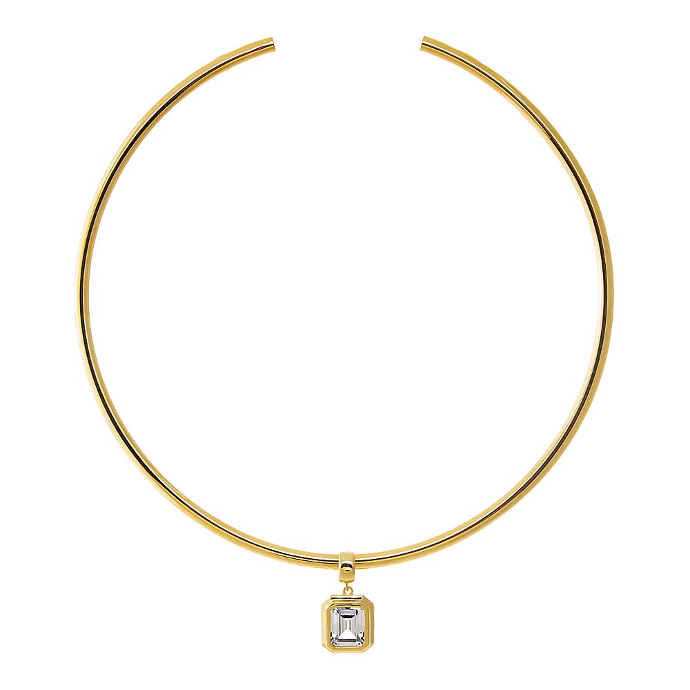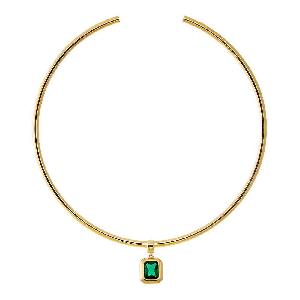 Colored CZ Emerald Bezel/ Solid Tube Open Collar Pendant Necklace