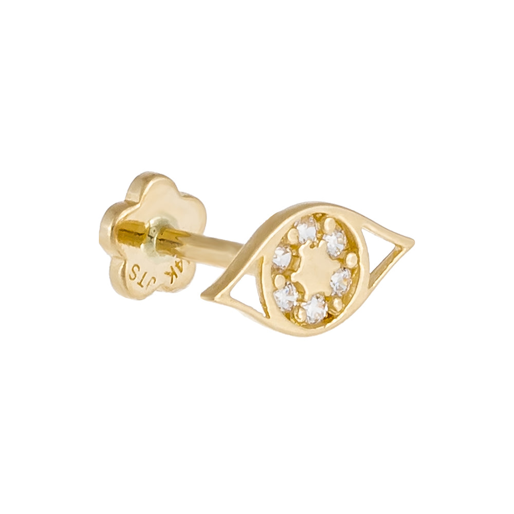 Eye the best sense of profound yet understated fashion in Adina Eden's Evil Eye Stud Earrings, featuring a series of brilliant CZ stones set in an exquisite 14K gold evil eye pendant stud. Make an iconic effect when you pair these beauties with a few other charming studs in a cocktail dress at any evening affair.