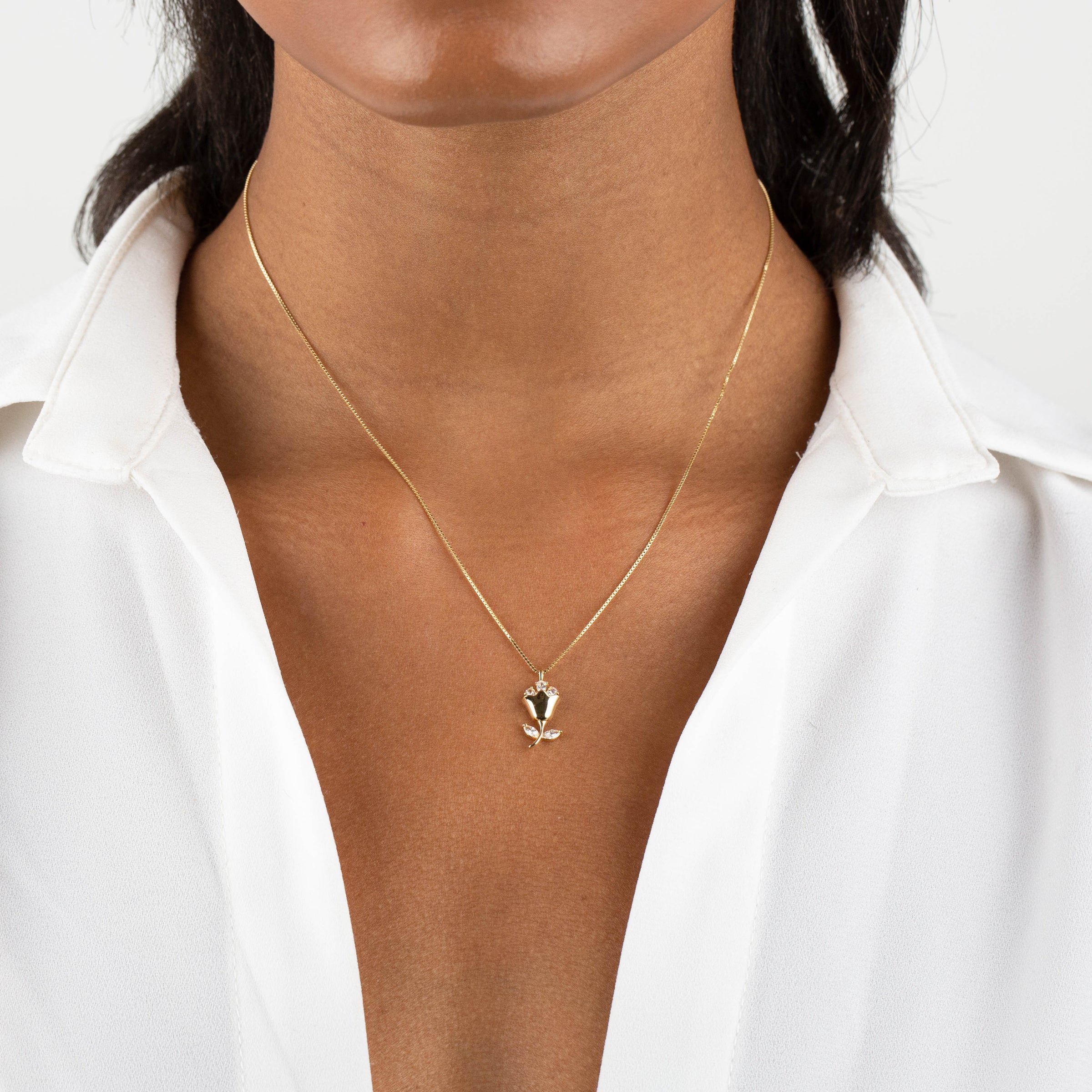 CZ Flower Box Chain Necklace