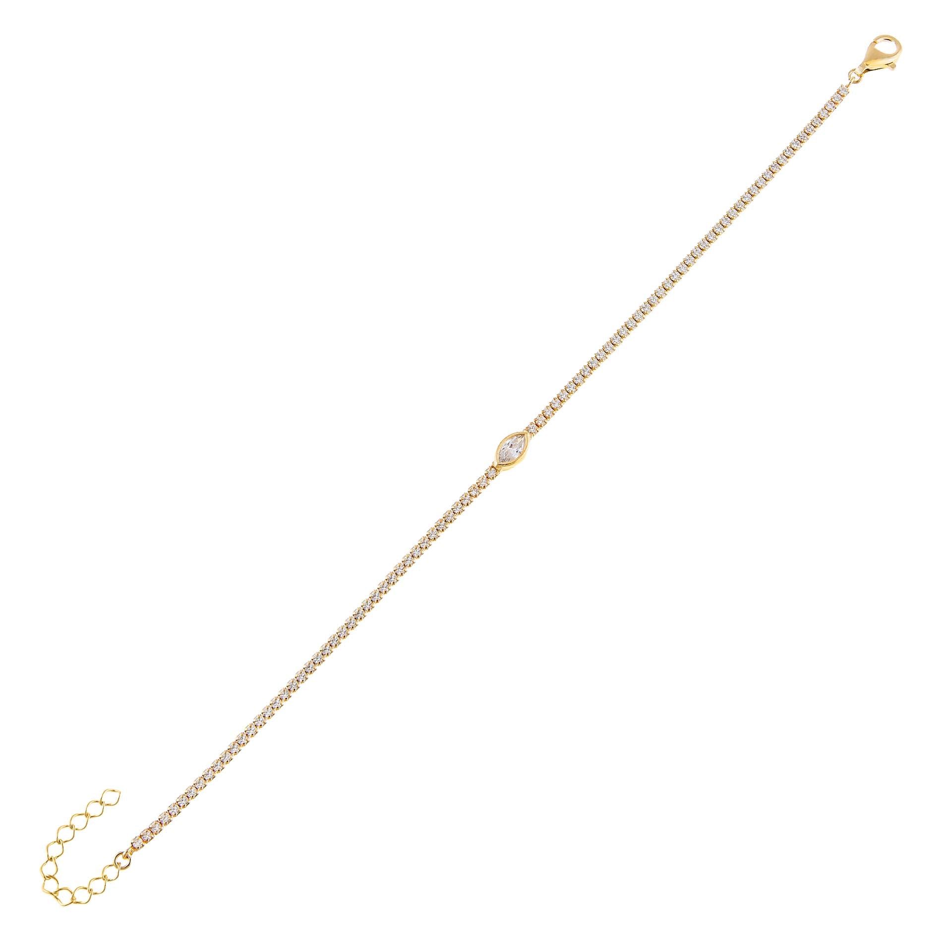 Rock a timeless vibe that will dazzle everywhere in Adina Eden's CZ Marquise Tennis Bracelet, featuring an elegant marquise-cut CZ stone pendant that is set into a sparkling tennis chain. Wear this gem with a few daintier chain pieces to really amp up your stacked style. Glamorous yet sophisticated!