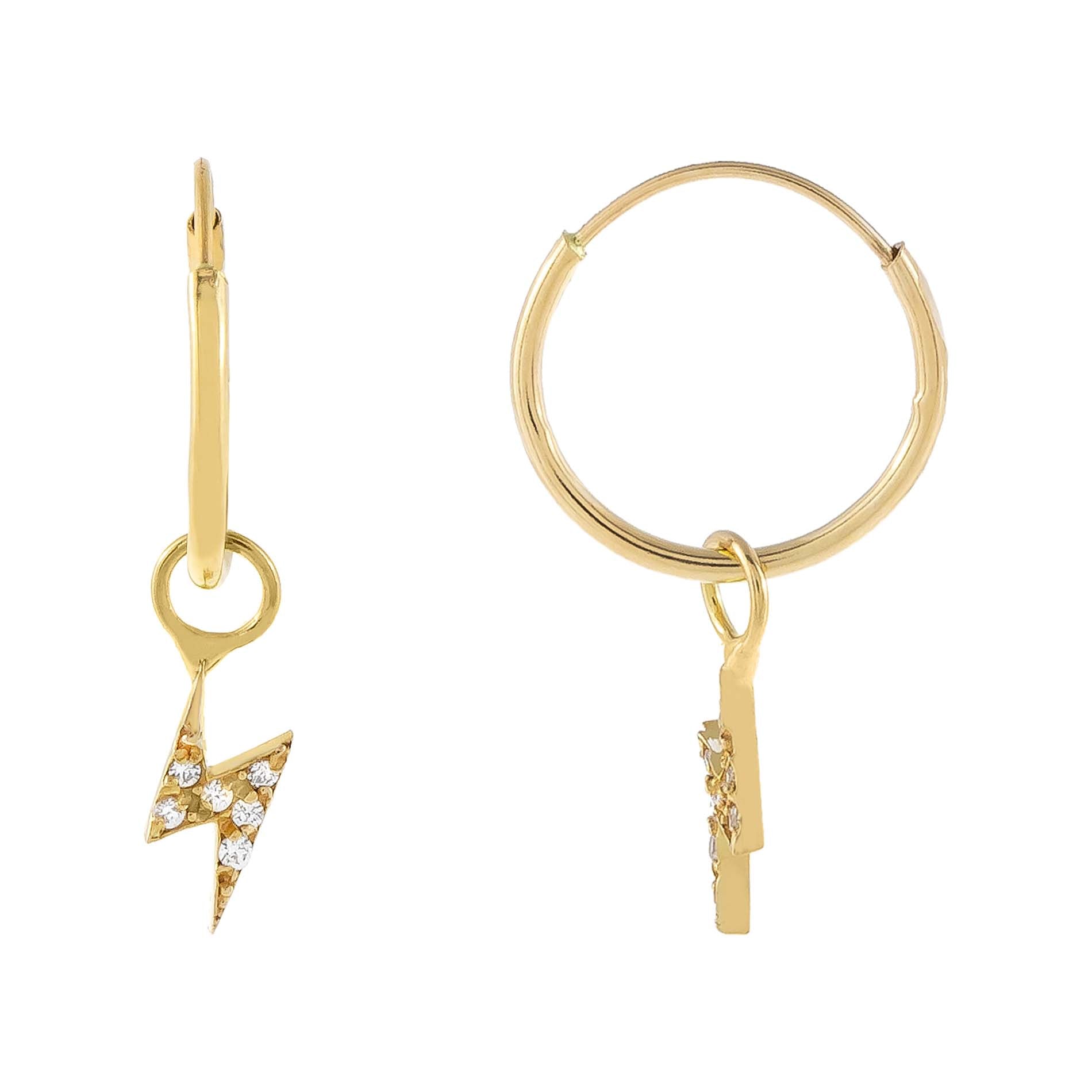 CZ Mini Lightning Bolt Hoop Earring 14K