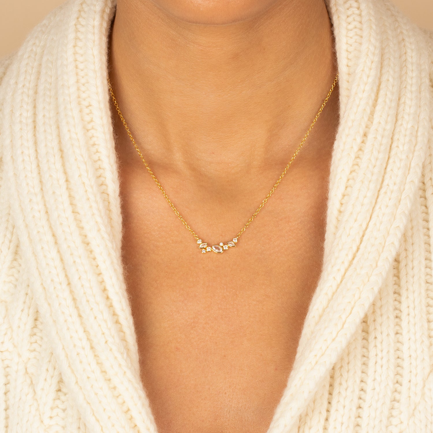 CZ Multi Shape Scatered Bezel Bar Necklace