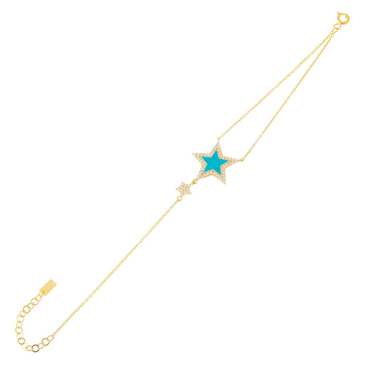 Be a shooting star of style with Adina Eden's CZ Neon Star Bracelet, featuring a stunning neon enamel star pendant that's bordered in sparkly CZ stones and set between a single and double chain design. Wear this eye-catching bracelet in a variety of bright colors ranging from heavenly white to lime green. Add it to your charm bracelet collection for a cute look.