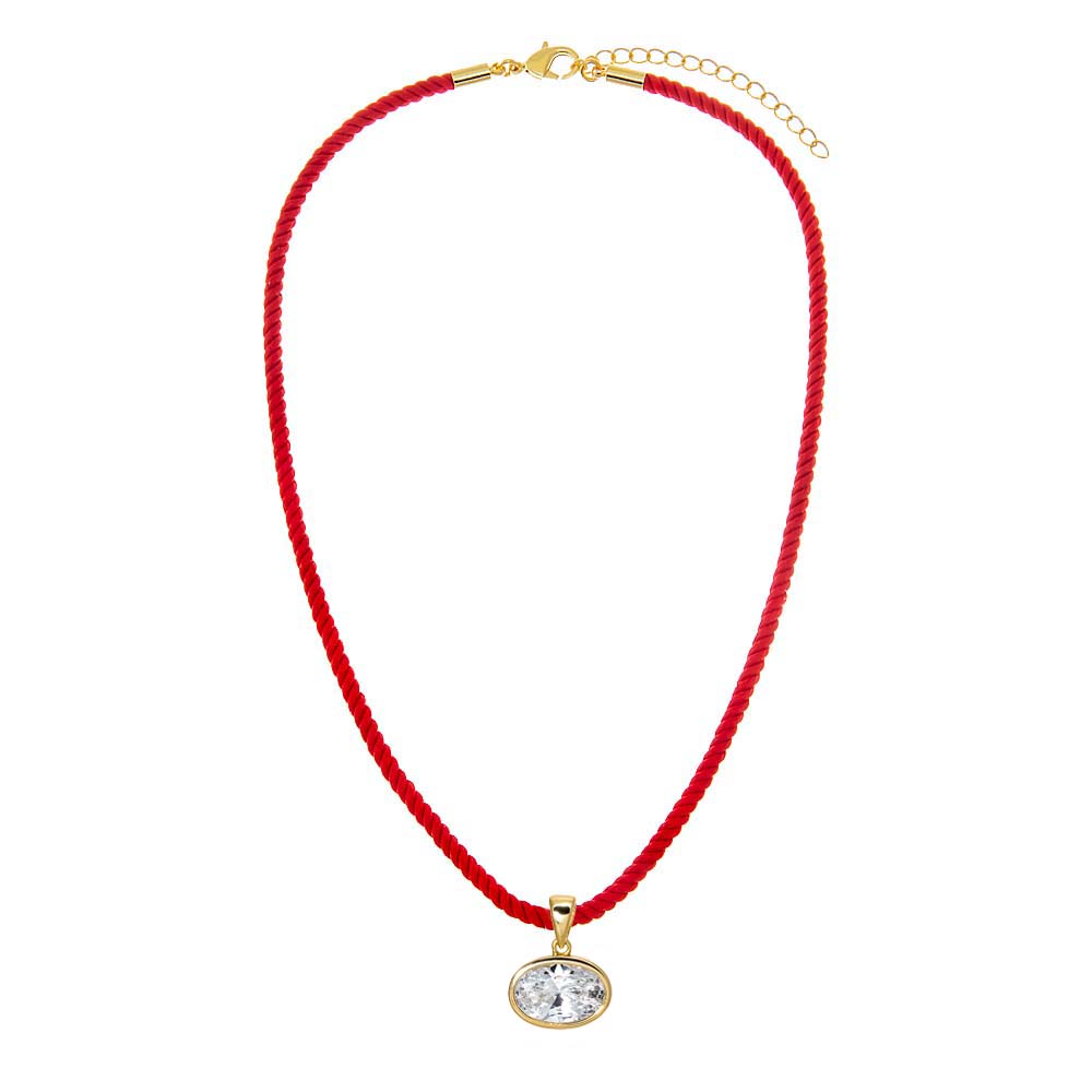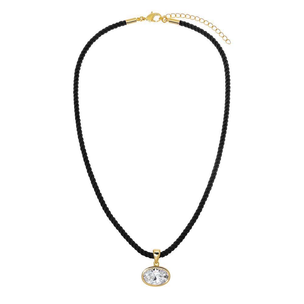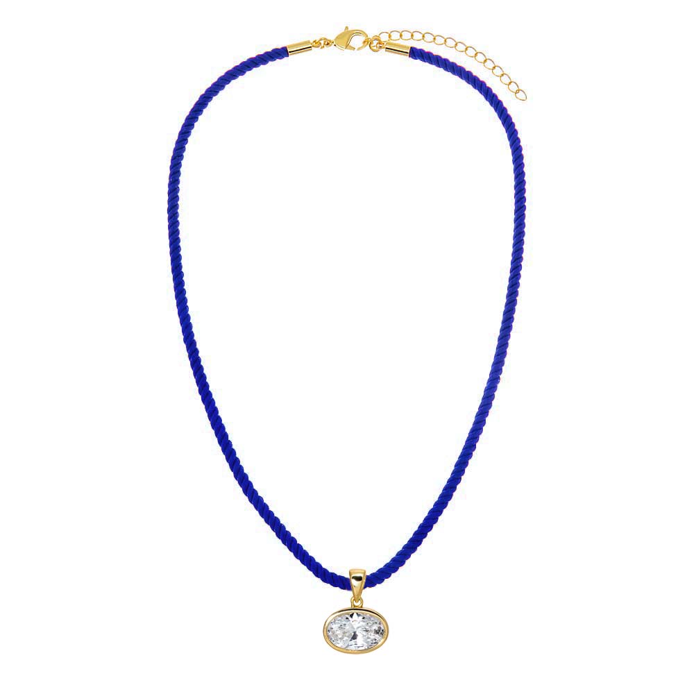 CZ Oval Bezel Charm & Colored Twisted Cotton Rope Necklace