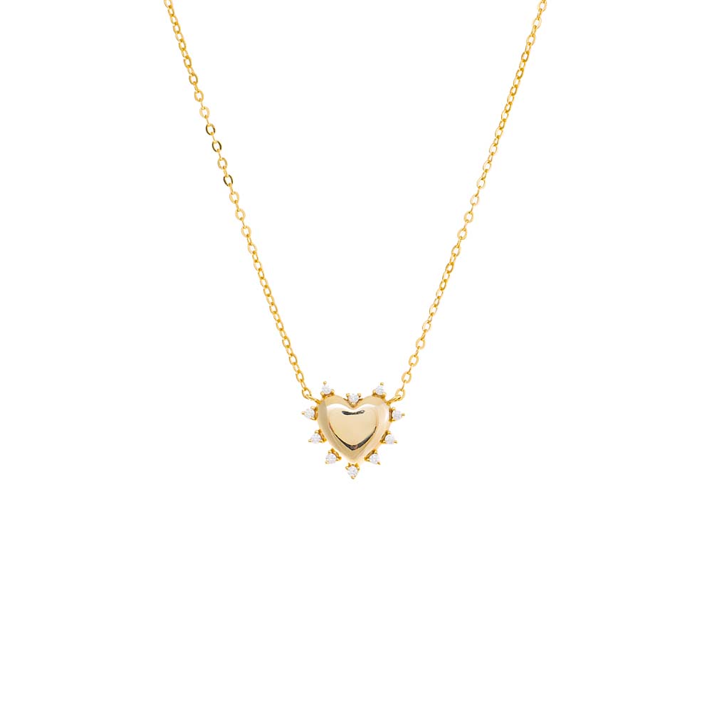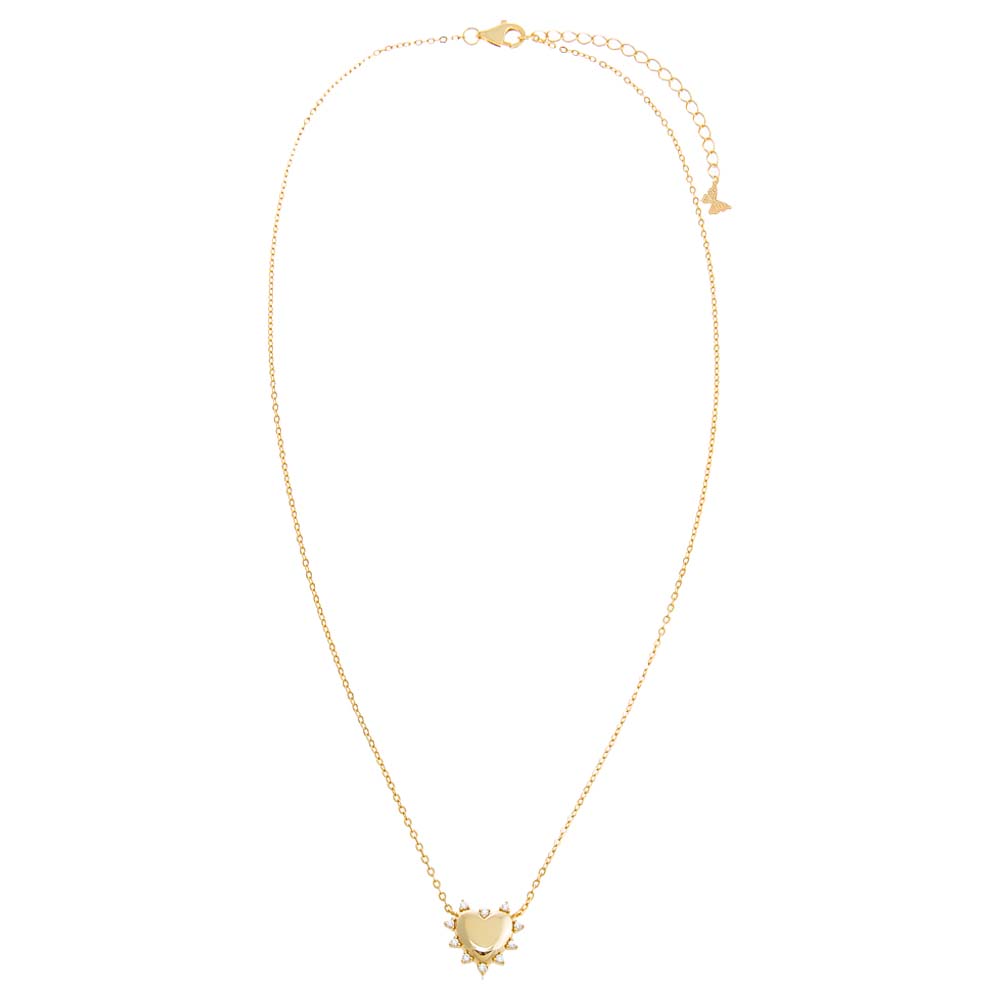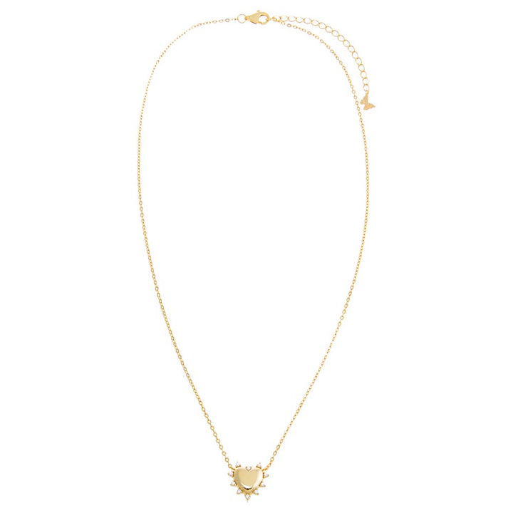 Introducing the CZ Rimmed Solid Heart Pendant Necklace from Adina Eden, a charming and elegant addition to your jewelry collection. Crafted from high-quality brass and plated with luxurious 14K gold, this necklace features a beautifully designed solid heart pendant, rimmed with sparkling clear CZ stones. Measuring 10 mm, the heart pendant adds a delicate and sophisticated touch to any outfit. The necklace comes with a 16-inch chain and a 2-inch extender, providing a versatile and adjustable fit to suit any neckline. Perfect for both everyday wear and special occasions, the CZ Rimmed Solid Heart Pendant Necklace is a timeless accessory that adds a touch of glamour and romance to any look. Elevate your style with this exquisite piece and enjoy the perfect blend of classic elegance and modern design.