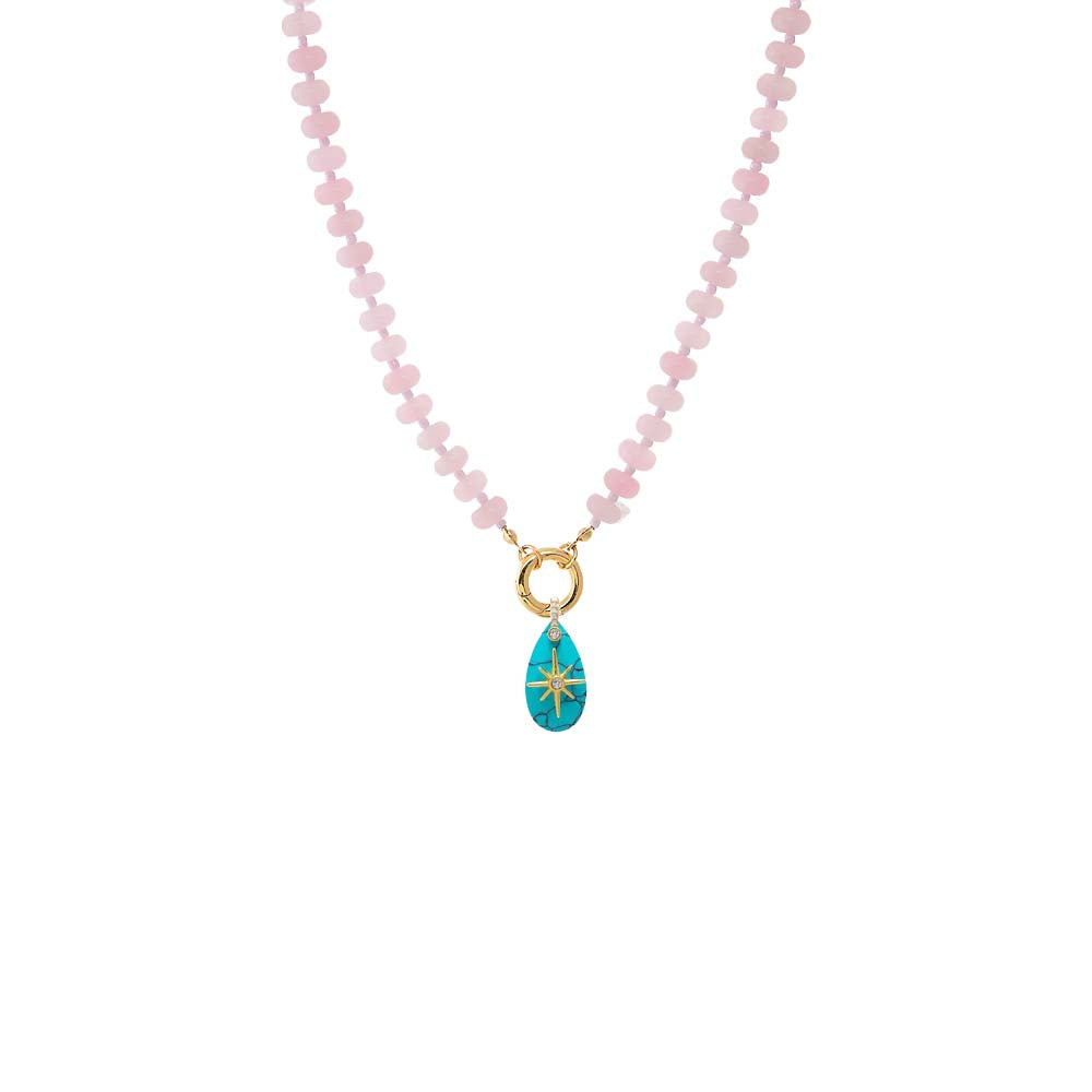 Add glam to your routine with the CZ Starburst Teardrop Natural Stone Pendant Beaded Clicker Necklace by Adina Eden, a playful Necklace with polish. Add a pop of shine with this sleek cute necklace for women, crafted in Rose Quartz, Turquoise and Jade Green for every occasion. When your outfit needs polish without the pressure, this piece lets you show up feeling confident and completely put together. Elevate this gold plated necklace with pieces from our Chain Necklaces collection to make your everyday styling effortless. An instant staple you'll turn to again and again with confidence.