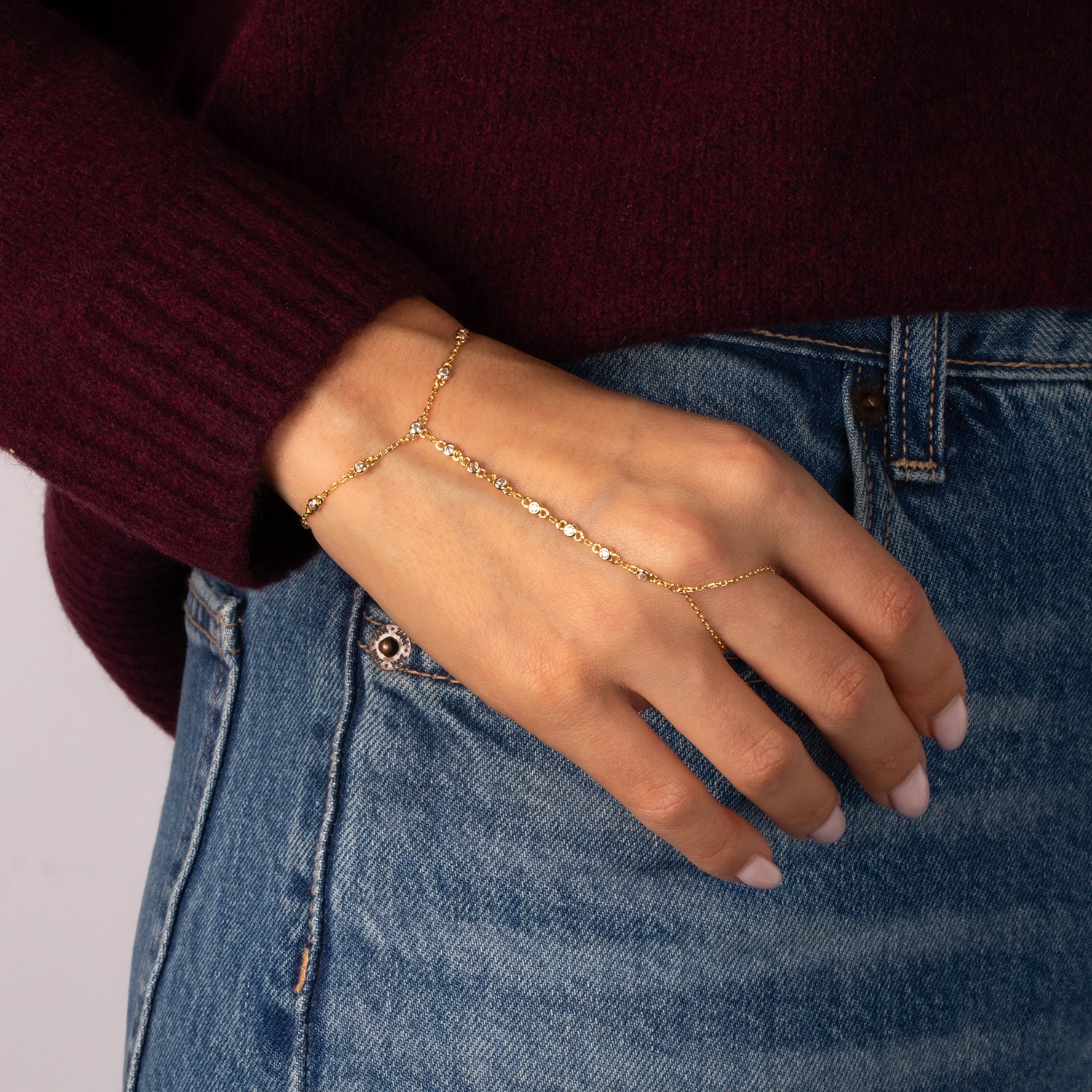 Give your style a fresh update with the CZ Station Hand Chain by Adina Eden, a sleek Bracelet built to layer. A balance of softness and sparkle, this bracelet hand chain is offered in Gold to style your way. From solo errands to group dinners, this detail adds subtle structure and polish without taking over your look. Complement this gold plated hand chain bracelet with pieces from our Hand Chain Bracelets collection for a timeless, layered effect. Once you wear it, you'll wonder how you styled without it.