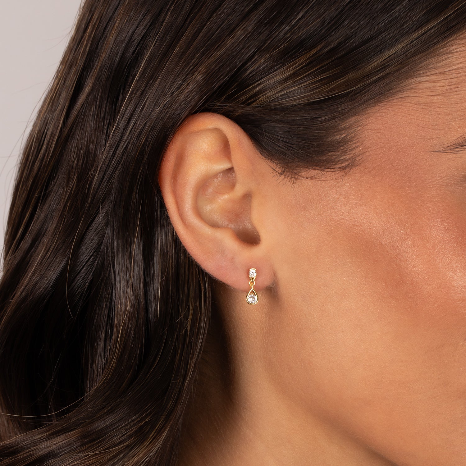 CZ Teardrop Duo Stud Earring
