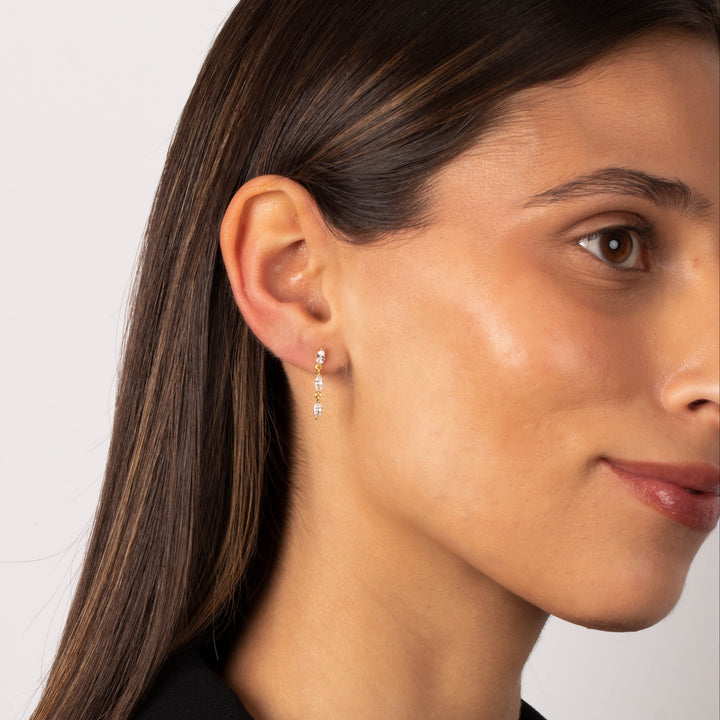CZ Triple Marquise Drop Stud Earring