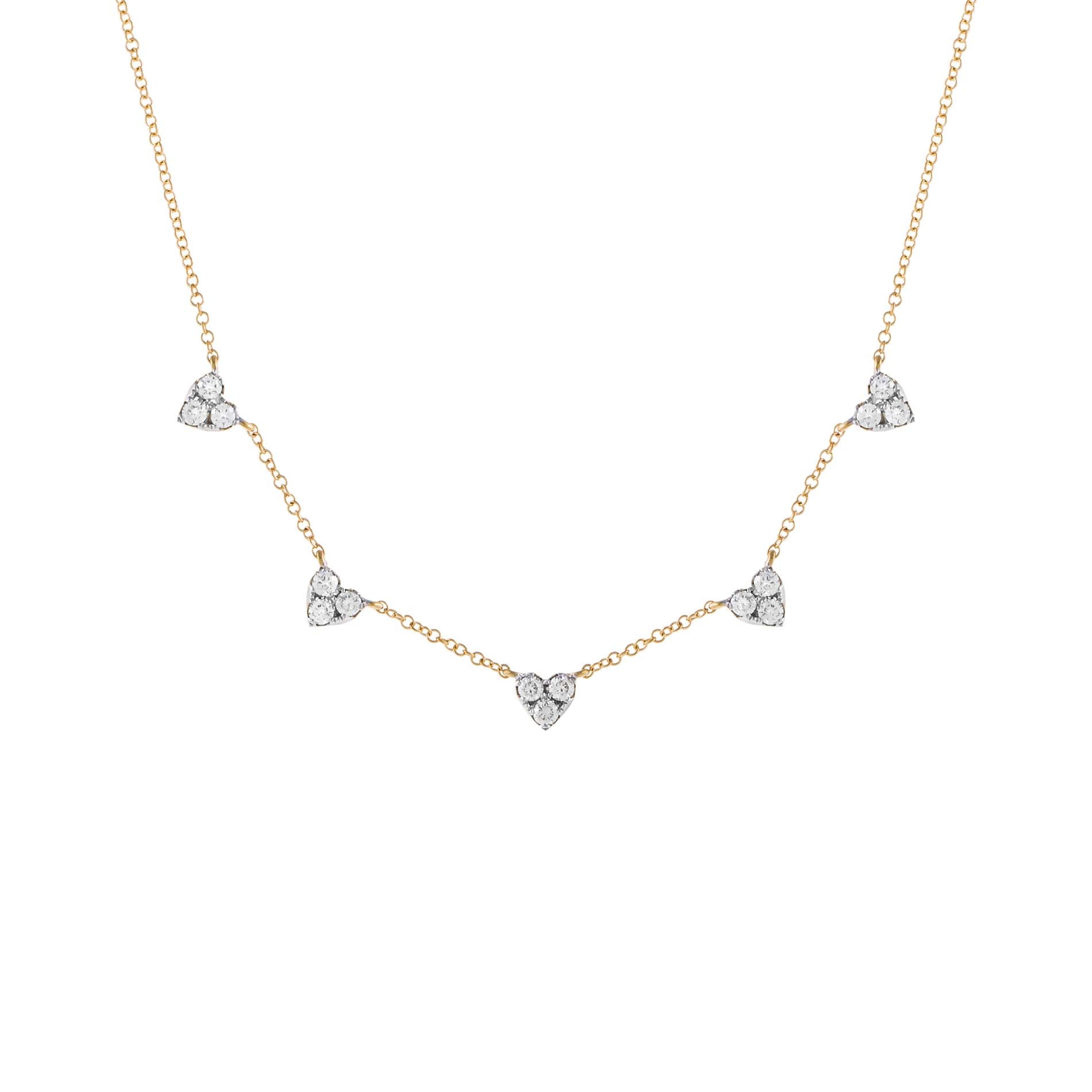 Make them fall in love with your sense of style with Adina Eden's Diamond 5 Cluster Heart Necklace, featuring a sparkling array of diamond heart clusters that dangles from a dainty 14K gold chain. Give this as an unforgettable gift to the fashionista who needs a little flirty dazzle to push the fold of style even further.