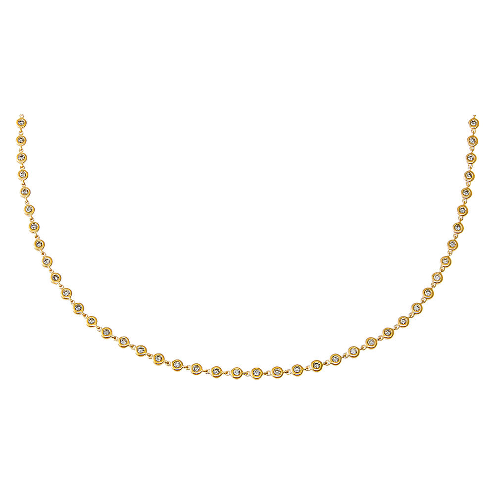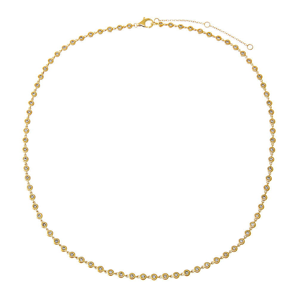 Adina Eden’s diamond bezel tennis choker is the ultimate blend of elegance and modern luxury. Crafted in 14K gold, this timeless piece features brilliant round-cut natural diamonds totaling 1.79 carats, each set in a sleek 3mm bezel for a refined, sophisticated sparkle. Designed with a 15” chain and a 1” + 1” extender for a customizable fit, this choker is perfect for layering or wearing solo as a statement of effortless glamour.