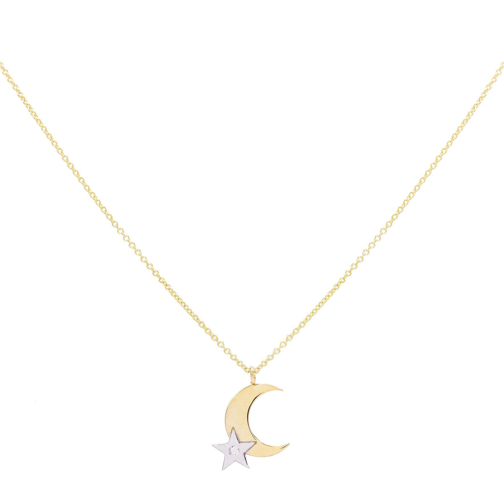 Reach for the moon in Adina Eden's gorgeous pendant necklace, which features a dangling connected moon and star charm set with a single round diamond. Made in our high-quality 14K gold, this necklace will provide you with a lifetime of shine.