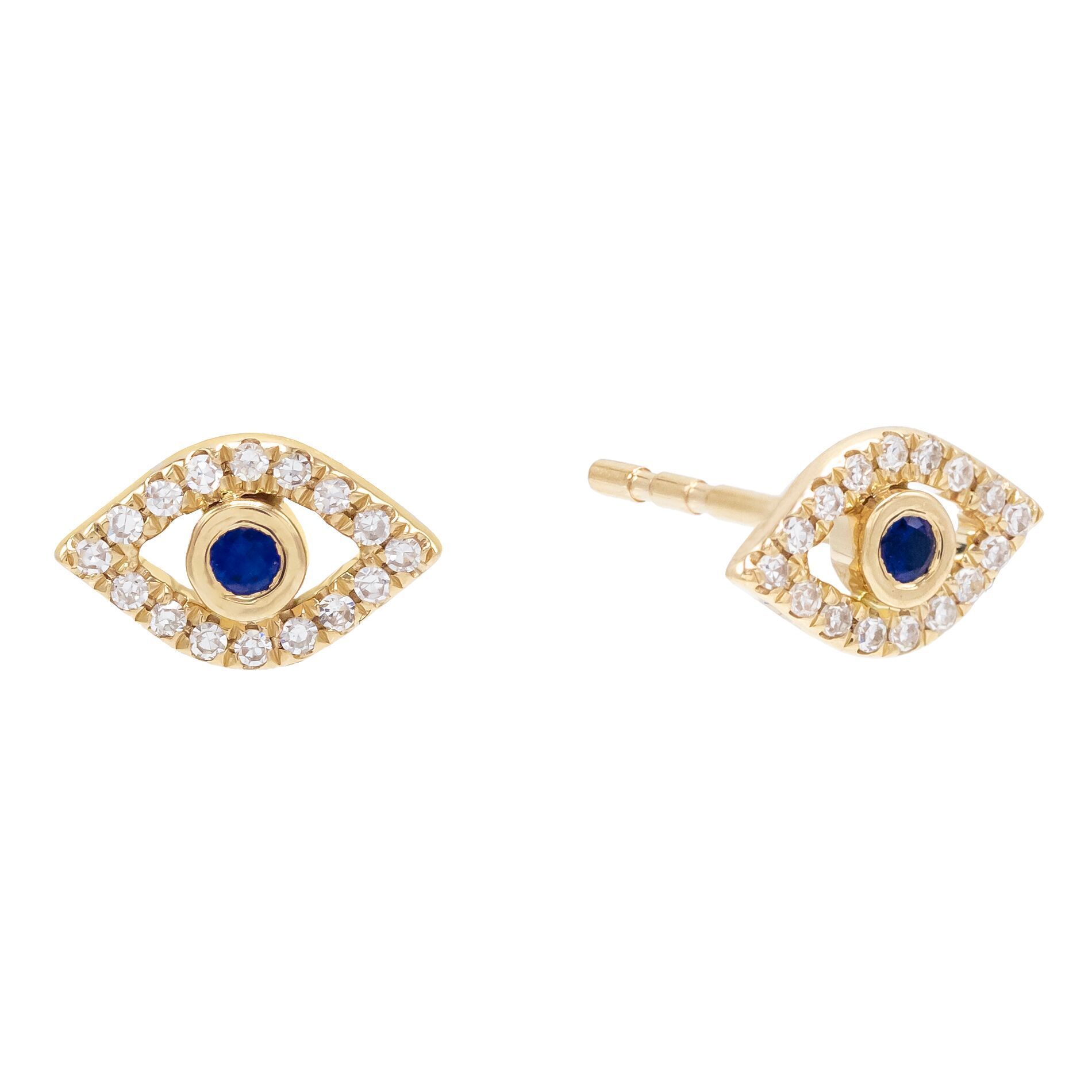Adorn yourself with Adina Eden's 'Evil Eye' stud earring, which features a cute eye shape set with with gorgeous clear and blue diamonds totaling .15 carats. It's perfect for the glam gal who wants to channel her playful side.