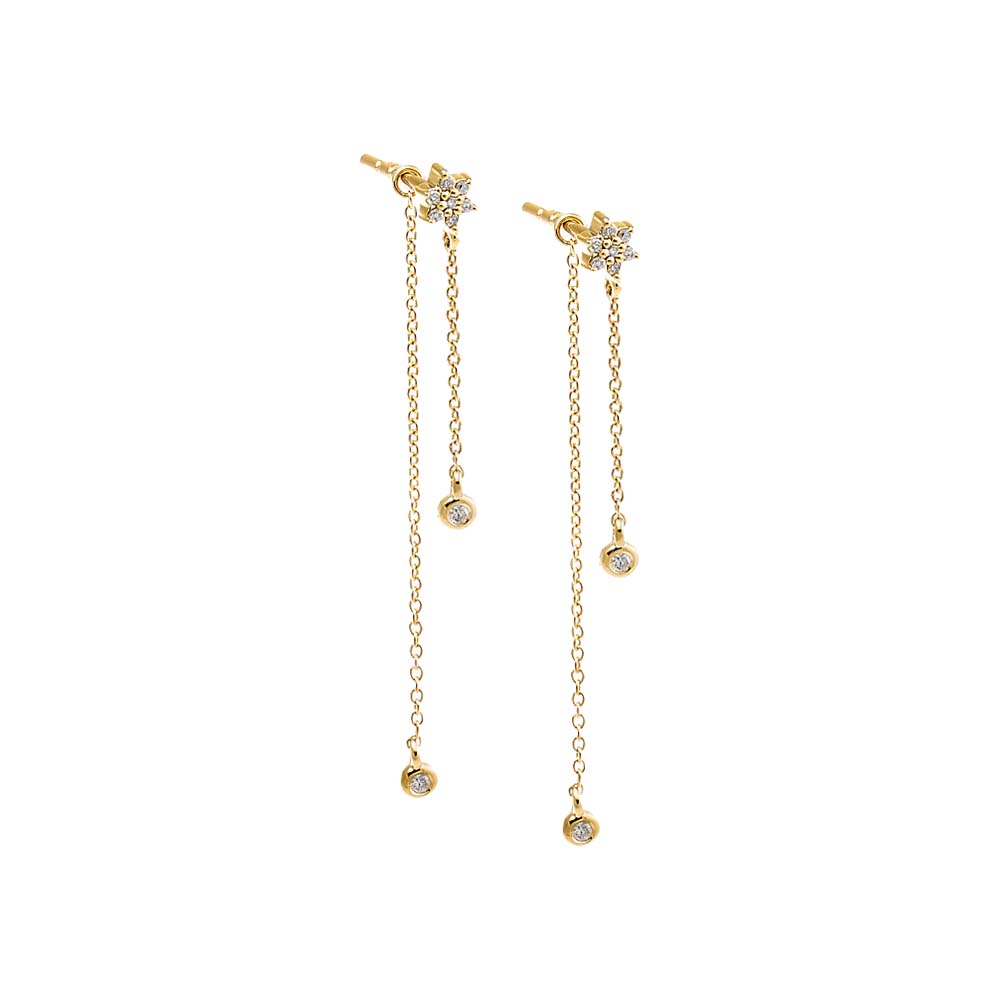 Diamond Flower X Bezel Chain Drop Stud Earring 14K
