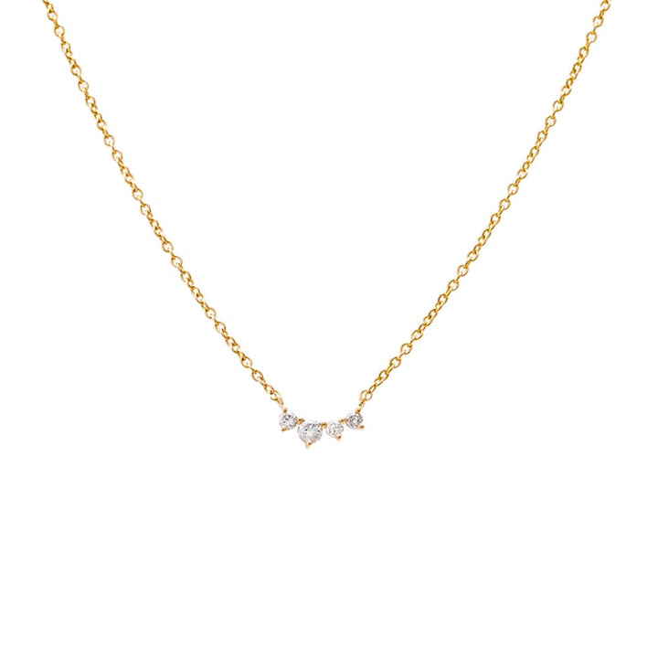Elevate your style with the Adina Eden Diamond Graduated Solitaire Curved Bar Necklace, expertly crafted in 14K gold. This sophisticated necklace features four brilliant round-cut natural diamonds, totaling .08 carats, elegantly arranged in a graduated design along a 7 MM curved bar. The subtle curve of the bar adds a graceful touch, while the diamonds provide a refined sparkle that enhances any look. With an adjustable length of 16" plus two 1" extenders, this necklace offers a perfect and comfortable fit. Each piece is custom-made with meticulous attention to detail, requiring 12-18 business days for production. Add a touch of timeless elegance to your jewelry collection with this stunning diamond solitaire curved bar necklace from Adina Eden.