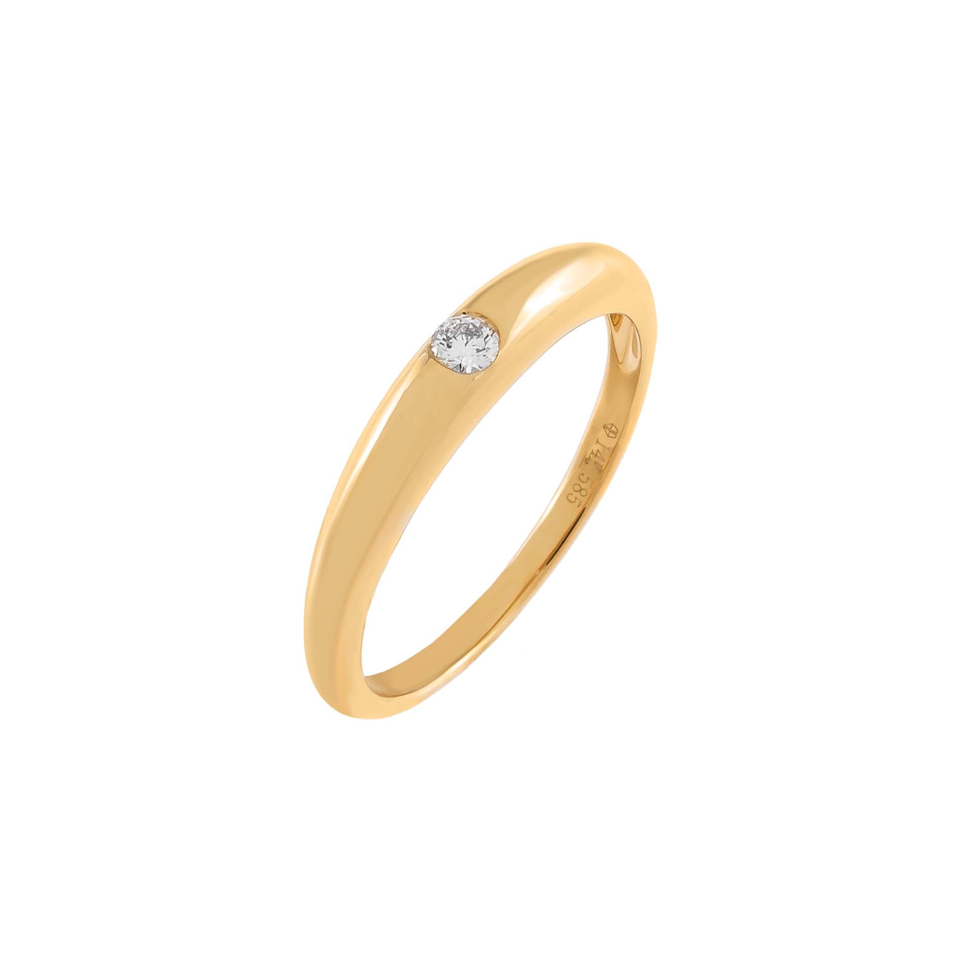 Give off an elegant vibe with Adina Eden's Diamond Hollow Dome Ring, featuring a single, dazzling diamond set into a chic hollow 14K gold dome band. The simplicity of this ring speaks to its versatile design. Rock a totally modern minimalist tone when you wear this beauty with a creamy dress and another delicate 14K gold ring or two.