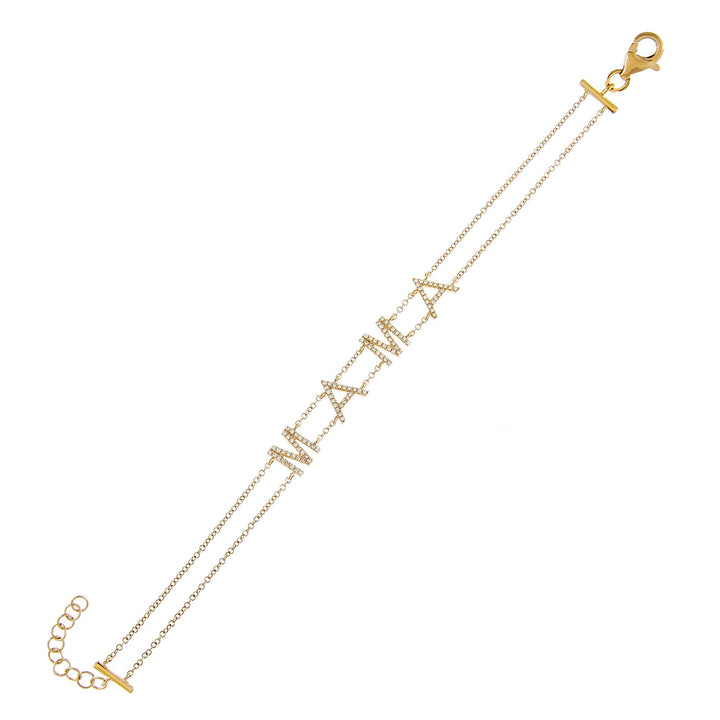 Amp up Mom's sparkle effect with Adina Eden's Diamond Mama Double Chain Bracelet, featuring a dazzling, diamond-adorned "Mama" lettering design set in between two delicate 14K gold chains. Add this to a cute 14K gold charm bracelet stack for a loving, personal touch. It makes a marvelous gift!