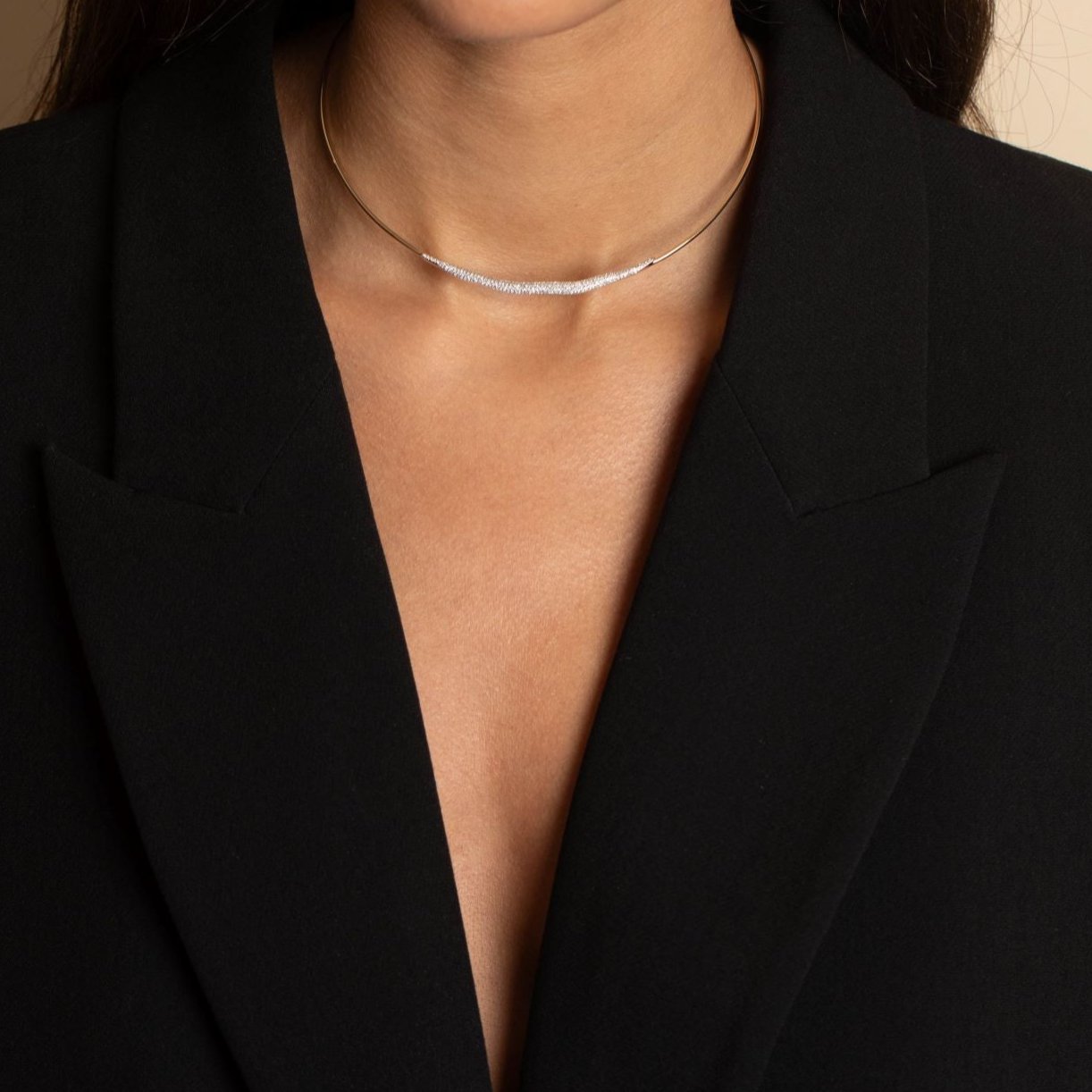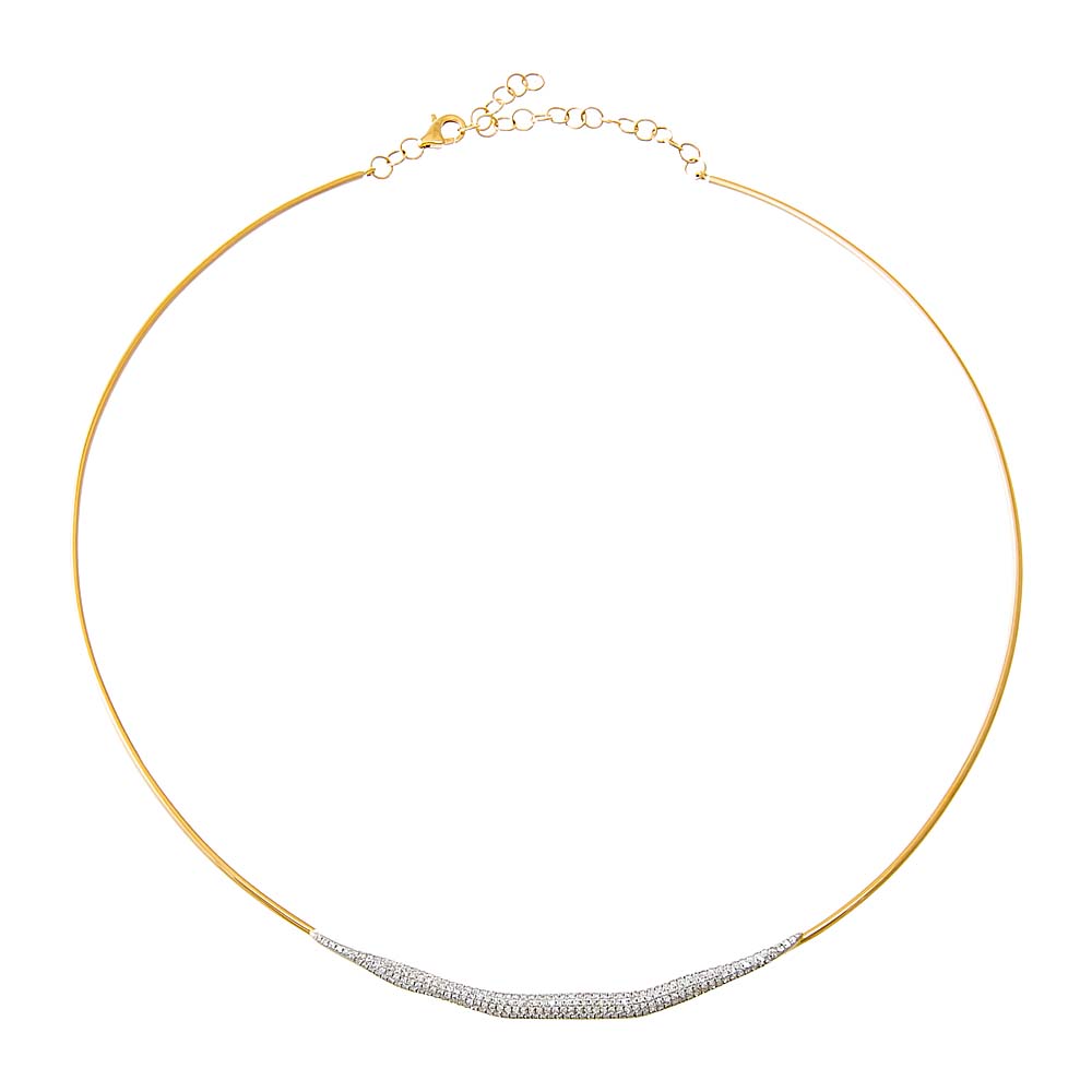 Indulge in the allure of refined luxury with Adina Eden’s Diamond Pavé Accented Wire Necklace. This exquisite piece, crafted from 14K gold, is adorned with 218 brilliant round-cut natural diamonds meticulously pavé-set along a delicate wire chain. With a total diamond weight of .47 carats, this necklace offers an enchanting shimmer that catches the light from every angle. Measuring 15 inches with a 2-inch extender, it’s designed for versatile wear, perfect for layering or as a standalone statement of sophistication. Effortlessly chic, this necklace is a celebration of timeless elegance and modern style.