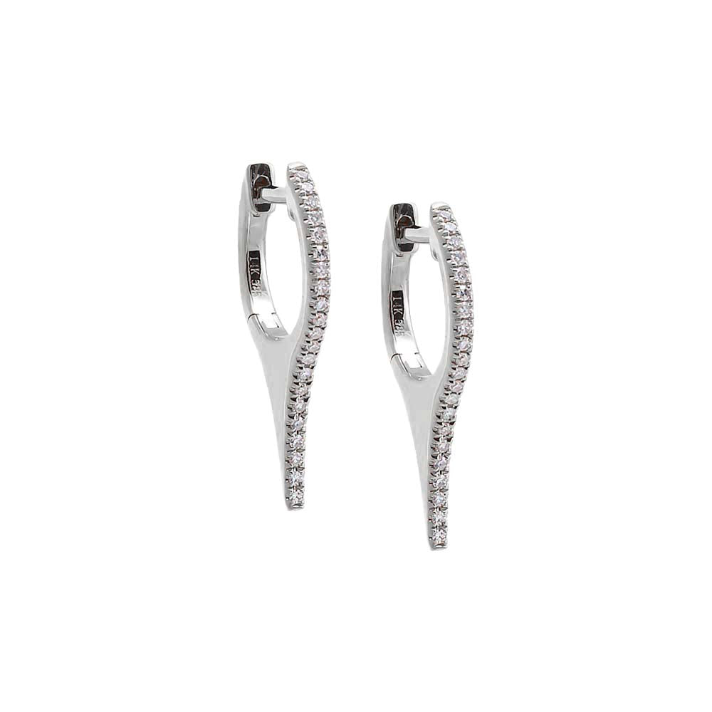 Diamond Pave Elongated Spike Huggie Earring 14K